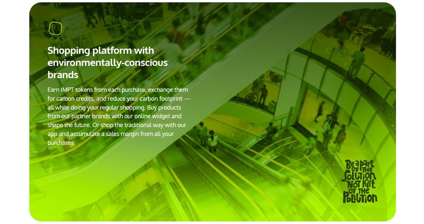 IMPT baut auch einen Einzelhandelsmarktplatz auf, auf dem Privatpersonen und Unternehmen ihren ökologischen Fußabdruck durch den täglichen Einkauf ausgleichen können.