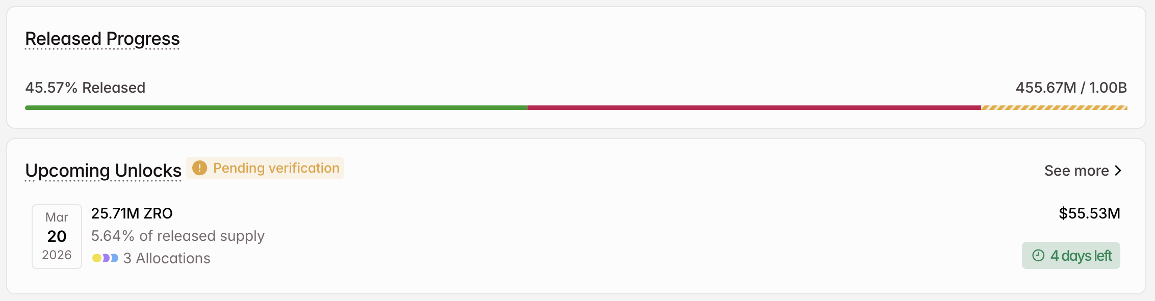 - Freigegebene Menge: 455,67 Millionen ZRO