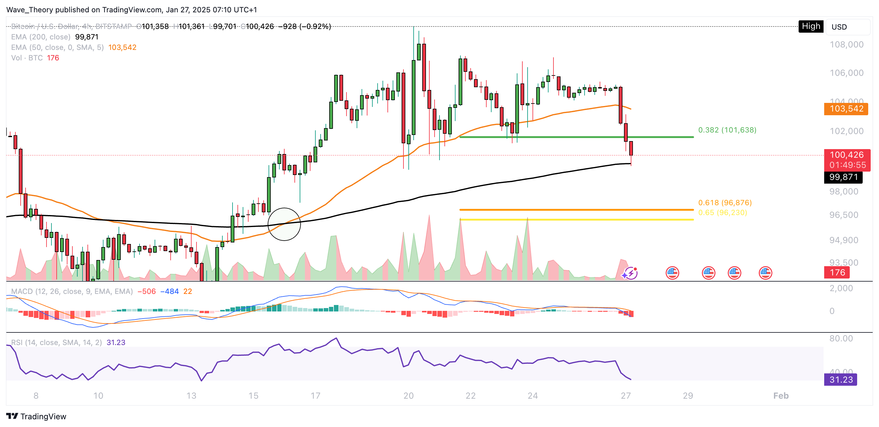 Jetzt stößt Bitcoin am 200-4H-EMA bei rund 99.870 USD auf Unterstützung. Wenn dieses Niveau bricht, könnte Bitcoin die Korrektur fortsetzen.