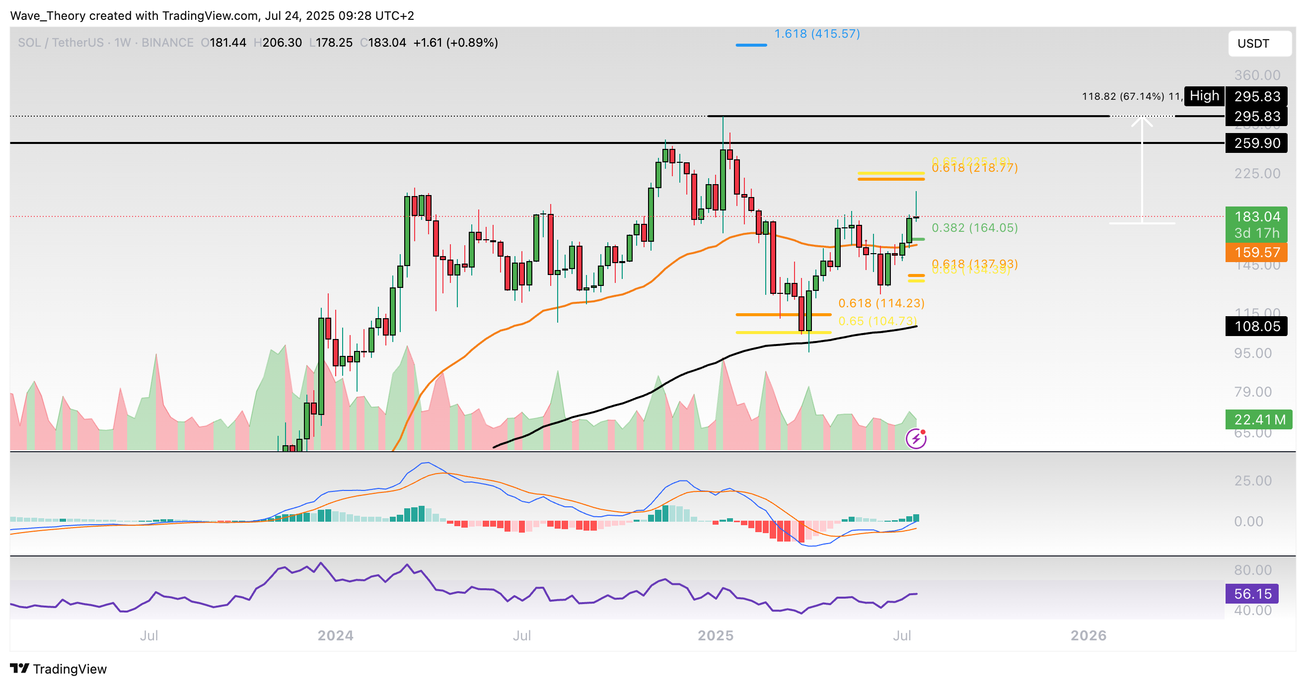 Erst wenn der SOL Kurs die Golden Ratio bei rund 220 USD überwindet, ist die Korrekturphase beendet. Dann könnte Solana zum Widerstandsbereich zwischen rund 260 USD und 290 USD steigen.