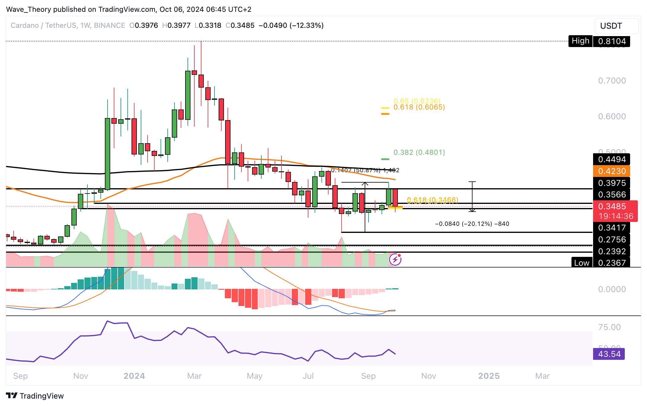 Der Cardano Kurs hat jetzt wichtige Fibonacci Unterstützung erreicht. Wird der ADA Kurs jetzt bullisch abprallen können?