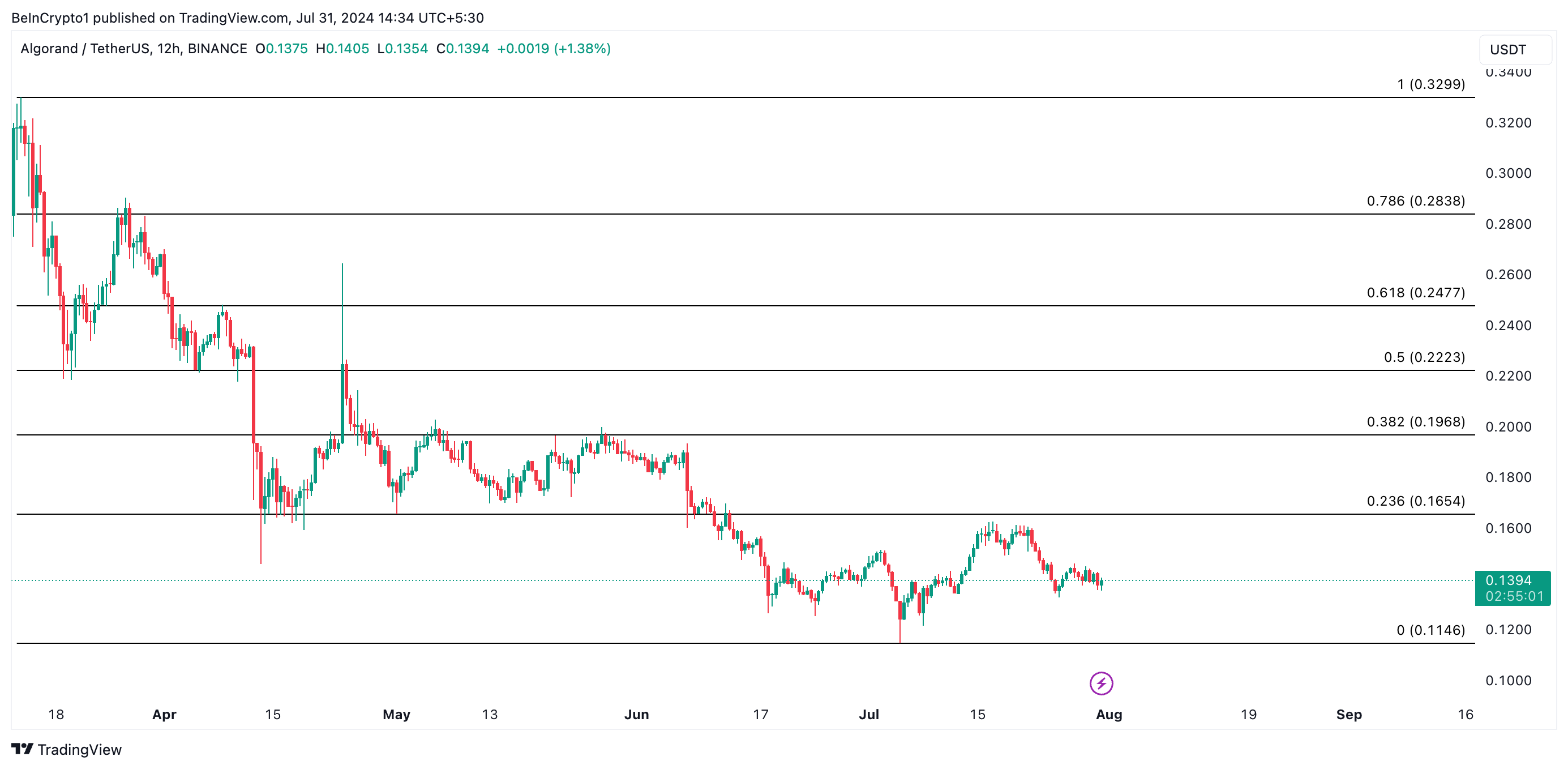 Jedoch, wenn sich der Trend ändert und die Stimmung von negativ zu positiv wechselt, könnte der ALGO-Kurs auf 0,16 USD steigen.