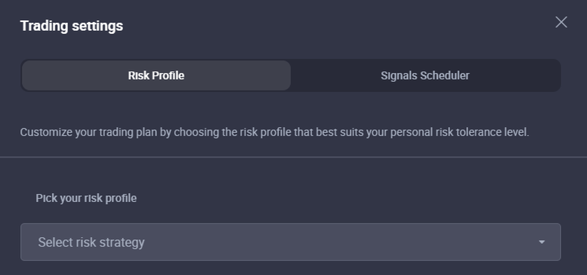 AlgosOne bietet zwei Arten von Risikoeinstellungen. Die erste ist „Niedriges Risiko“, bei dem Händler von einer höheren Erfolgsquote bei minimiertem Risiko profitieren, was es zu einer idealen Einstellung für Händler mit einer niedrigen Risikoschwelle macht. Allerdings sind die Renditen bei dieser Einstellung auch niedrig.
