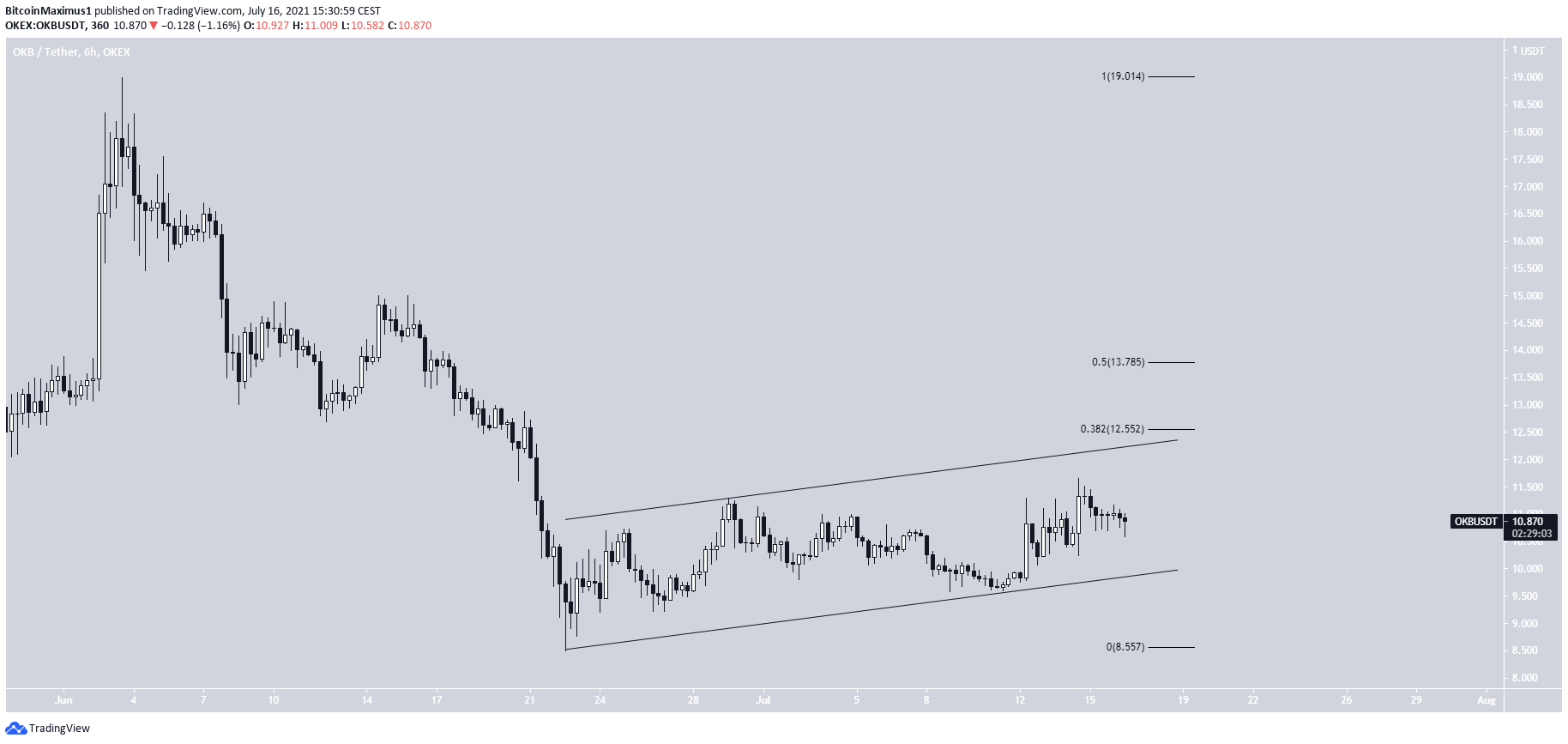 Der OKB Preis ist, seitdem er am 22. Juni 2021 den Tiefpunkt bei 8.50 USD erreicht hat, wieder angestiegen. Die Aufwärtsbewegung sieht langsam und abgehackt aus. Deswegen könnte es sich bei dem aktuellen Kursverlauf um eine Korrekturformation handeln, die sich möglicherweise innerhalb eines aufsteigenden, parallelen Channels abspielt.