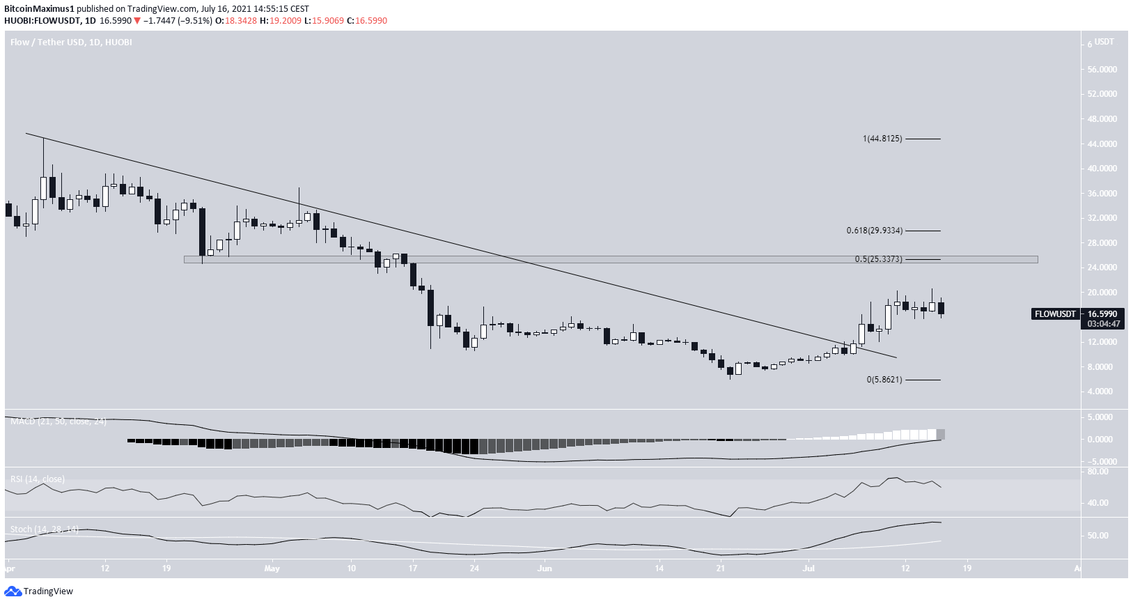 Seitdem befindet sich der FLOW Kurs in einer Aufwärtsbewegung. Am 15. Juli 2021 erreichte der FLOW Preis den lokalen Hochpunkt bei 20.61 USD.