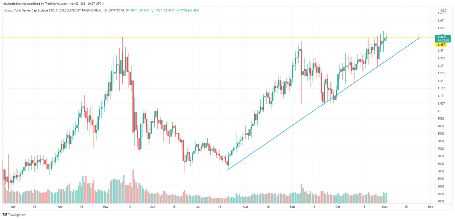 “Die Altcoin-Marktkapitalisierung sieht so aus, als würde sie bald explodieren! (…) im November kann es eine #ALTSEASON geben.”