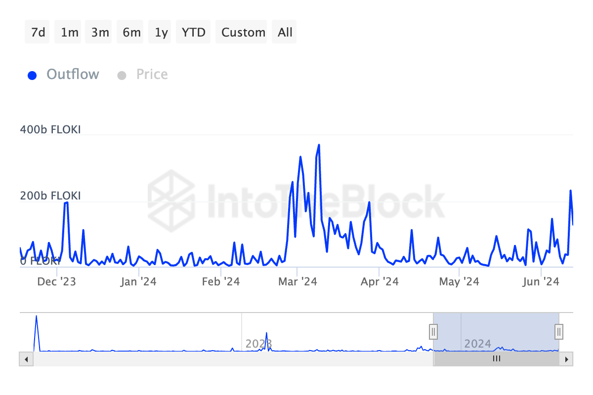 Der Kursrückgang ist teilweise auf die bedeutenden Walabflüsse zurückzuführen, die letzte Woche beobachtet wurden. Zum Kontext: Am 12. Juni beliefen sich die Abverkäufe auf 253 Milliarden FLOKI, was zu aktuellen Marktpreisen 53 Millionen USD entspricht.