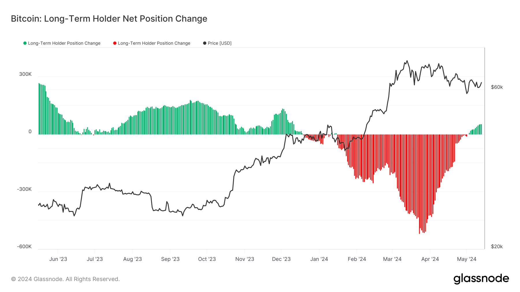 Tatsächlich zeigen On-Chain-Daten von Glassnode, dass Investoren strategisch mehr Bitcoin ansammeln. Ihre Handlungen deuten darauf hin, dass sie an den dauerhaften Wert von BTC glauben, besonders da es sich oberhalb von 60.000 USD stabilisiert.