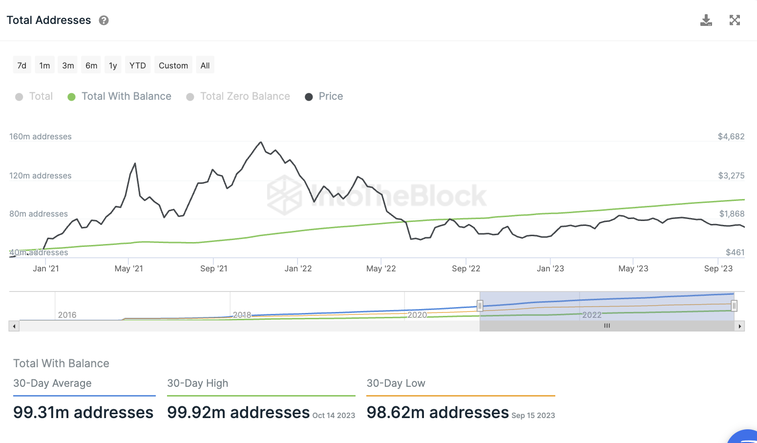Es fehlt nicht mehr viel, bis die Anzahl an Ethereum Adressen die 100 Millionen Marke erreicht. Davon sind aber mehr als die Hälfte im Minus.