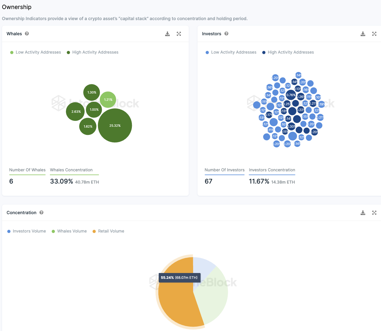 Eher bullisch ist, dass über die Hälfte der Ethereum Token von Kleinanlegern gehalten wird