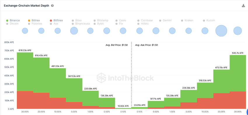 Wie auf dem Chart unten zu sehen ist, platzierten APE-Trader Kaufaufträge in Höhe von 487.230 APE-Token um die1,40 US-Dollar-Marke.