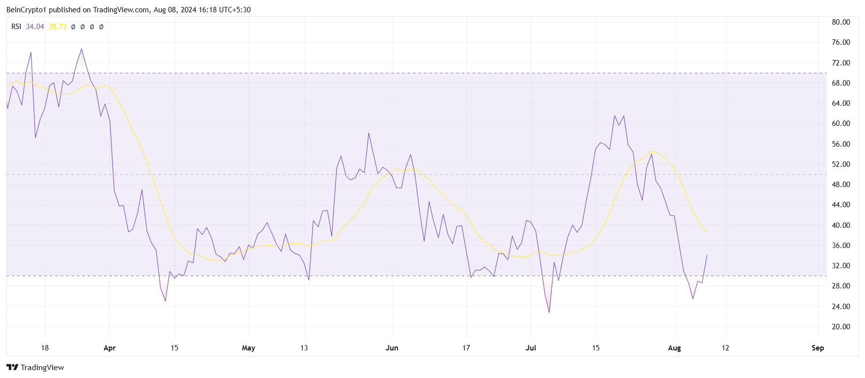 Während der RSI steigt, spiegelt dies ein wachsendes Interesse und eine mögliche Erholung des Kurses von Aptos wider. Dies signalisiert, dass der Coin an Zugkraft gewinnt und in eine bullischere Phase übergeht.