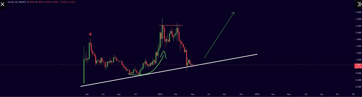 Der Token handelt derzeit bei etwa 1,02 USD, mit einem bemerkenswerten Widerstandsniveau bei 1,20 USD. Wenn ARB diese Barriere durchbrechen kann, wäre die nächste kritische Marke, die es zu beachten gilt, knapp über 1,50 USD.