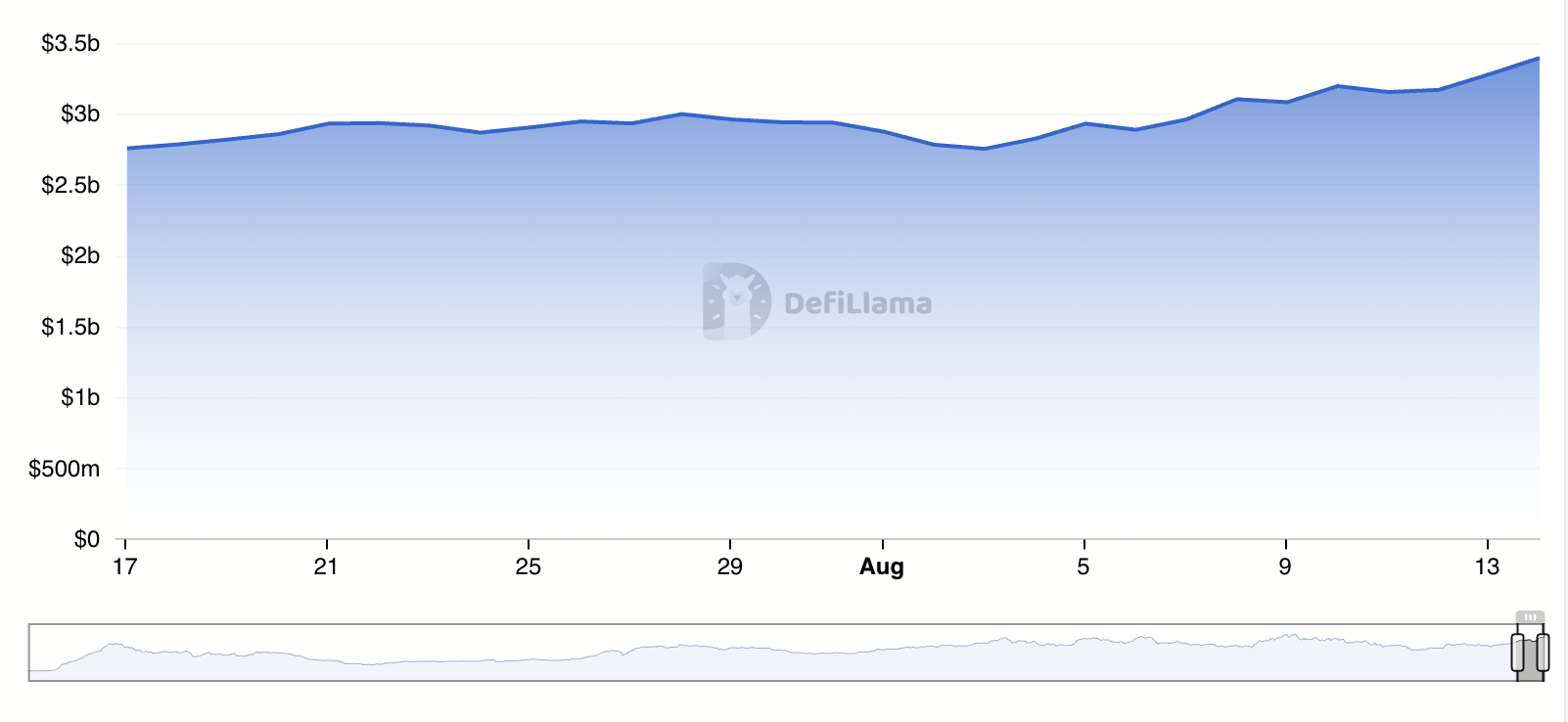 Laut DeFiLlama hat Arbitrum’s TVL einen Jahresrekord von 3,39 Mrd. USD erreicht und ist in den letzten vier Wochen stetig gestiegen.