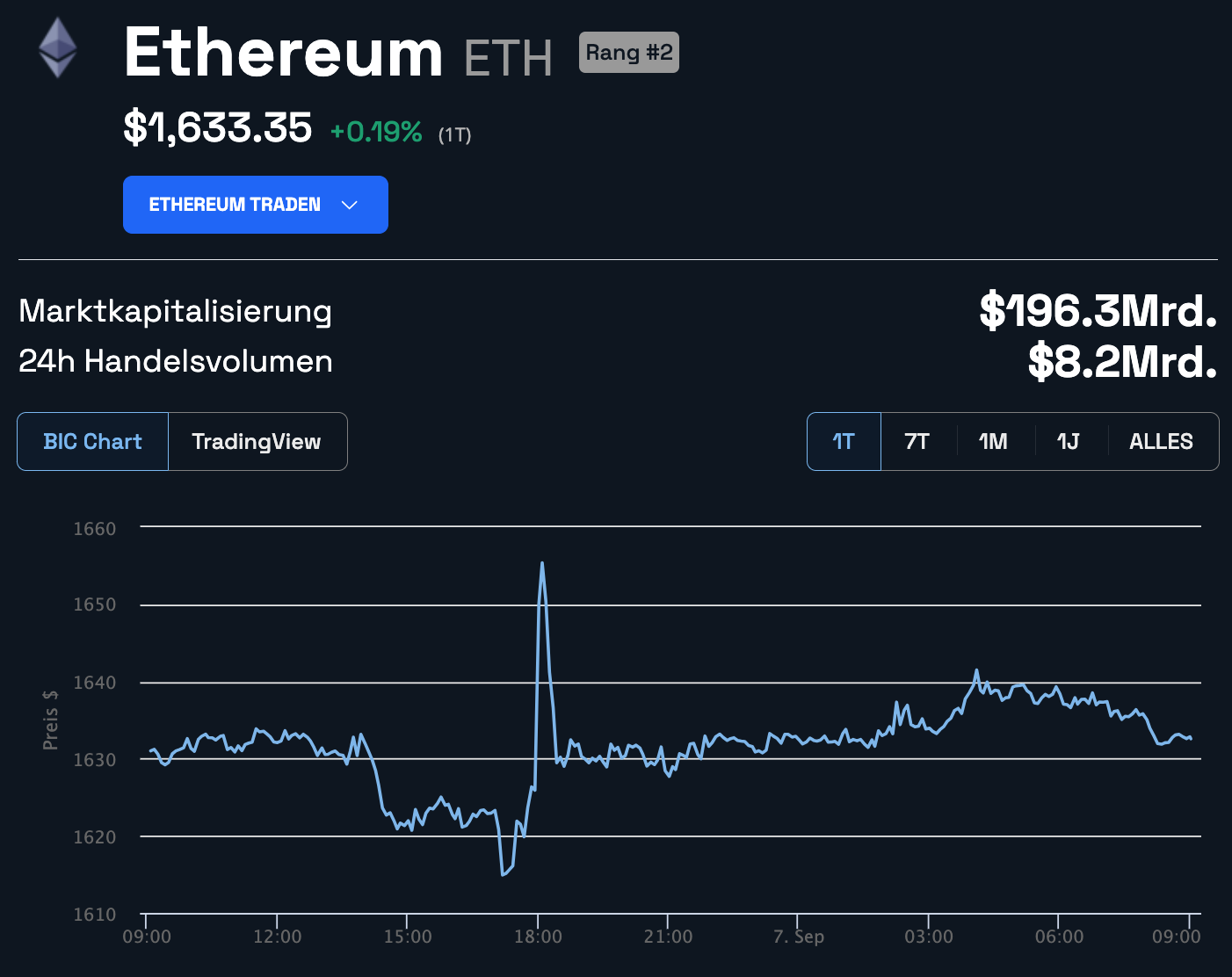 Solllte das Investment-Produkt zustande kommen, würde ein Großteil der ETH-Bestände aus Sicherheitsgründen in einer Cold Wallet, also offline, gelagert werden. Der ETH Kurs reagierte auf diese Nachricht mit einem explosiven Anstieg, bevor er nahezu umgehend wieder zurück auf etwa 1.630 USD fiel.