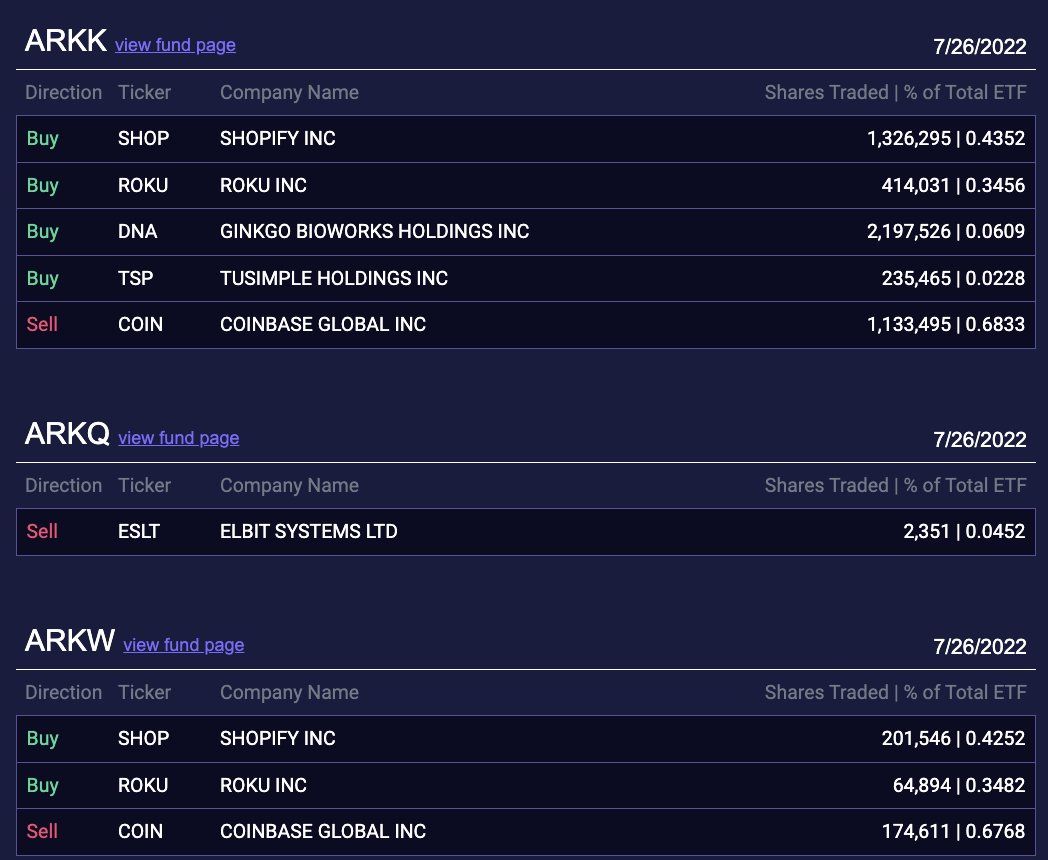 Wie auf dem Bild zu sehen ist, haben die AARK 1.133.485, die ARKW 174.611 und die ARKF (nicht am Bild) 110.218 Aktien verkauft.