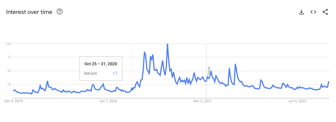 Wo stand das öffentliche Interesse, als Bitcoin seinen Bullenlauf in 2020 begann?