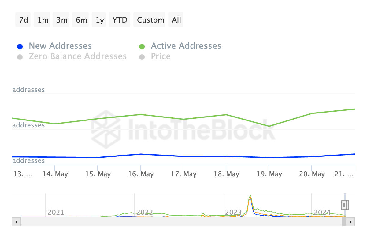In den vergangenen sieben Tagen ist die Anzahl der Adressen, die täglich mindestens eine AVAX-Transaktion abgeschlossen haben, um 36 Prozent gestiegen. Ebenso hat die Zahl der neu erstellten Adressen zum Handel mit dem Altcoin im betrachteten Zeitraum um 41 Prozent zugenommen.