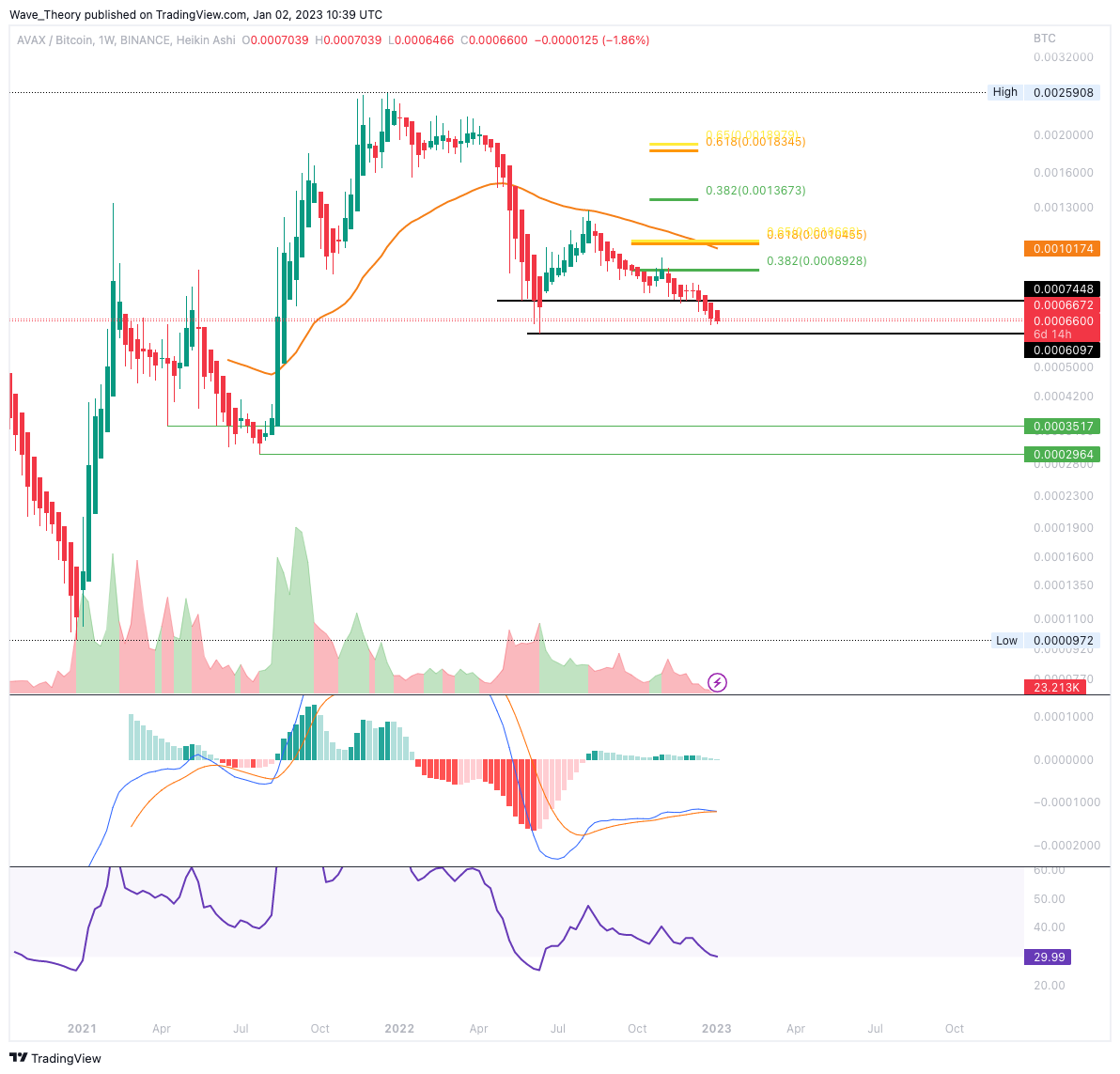 Gegen BTC erreichte AVAX signifikante Unterstützungszone