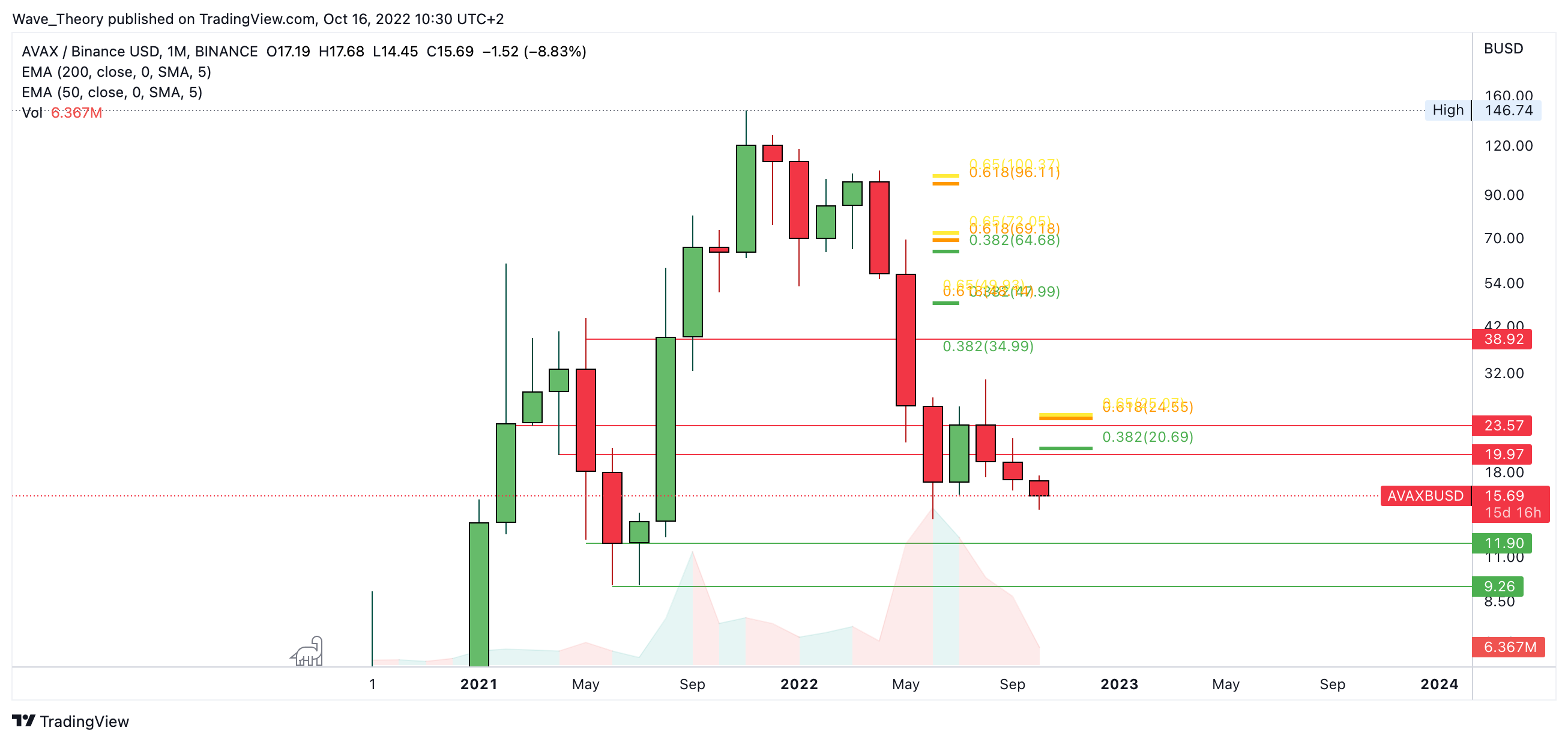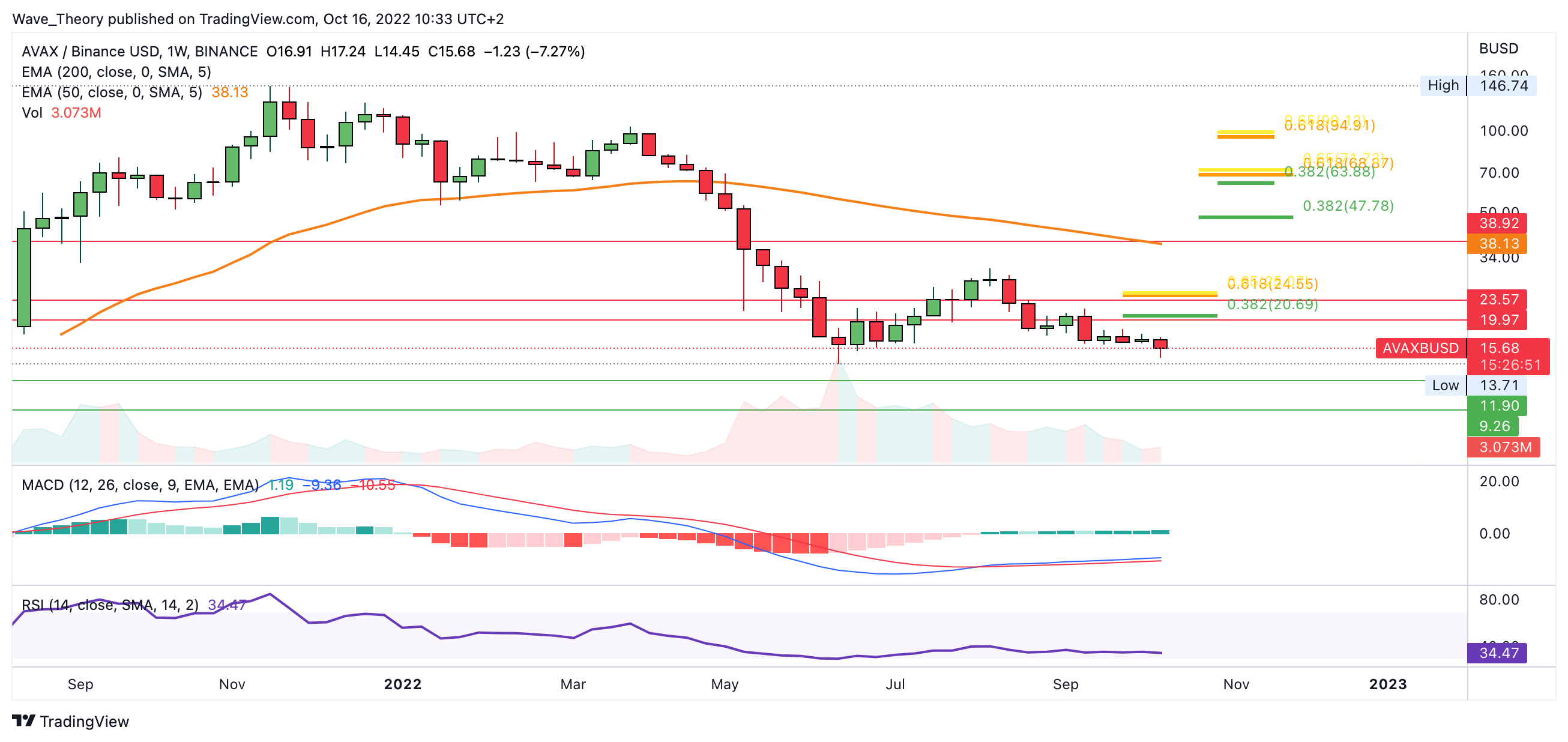 Sollte AVAX die Golden Ratio bei rund 25 USD überwinden, ist die Korrekturbewegung vorerst abgeschlossen. Dann könnte AVAX den Versuch unternehmen, den 50-Wochen-EMA bei rund 38 USD anzuvisieren.