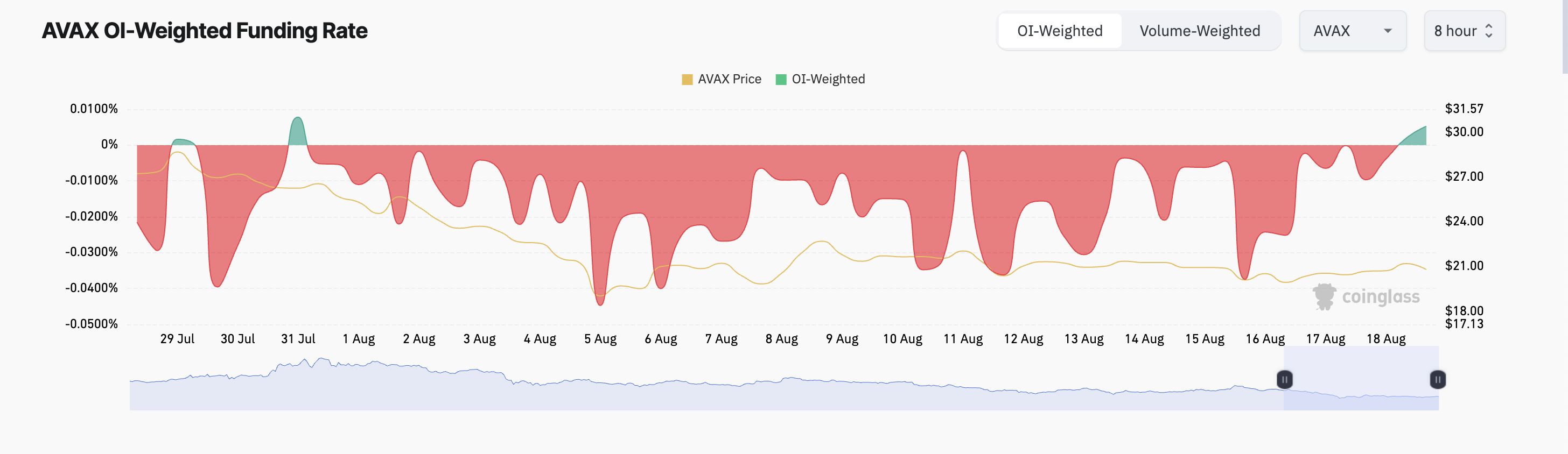 Zusätzlich zu diesem bullischen Sentiment hat sich die Finanzierungsrate von AVAX über Börsen seit Anfang August zum ersten Mal positiv entwickelt, laut Daten von Coinglass. Diese positive Finanzierungsrate verstärkt den wachsenden Optimismus unter den Händlern.