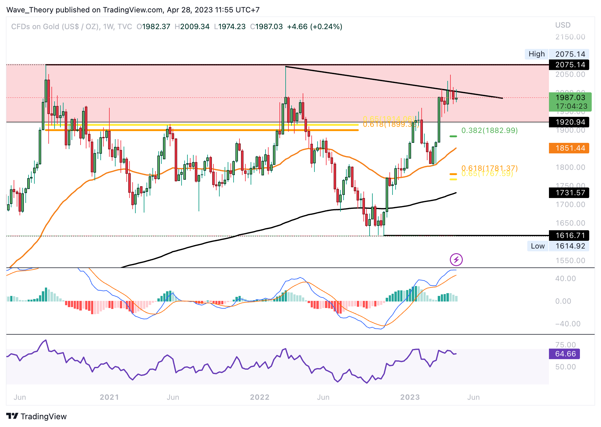Sponsored- Der Gold Kurs stieg um rund 21 % nach Erreichen des 50-Monate-EMA bei rund 1.693 USD