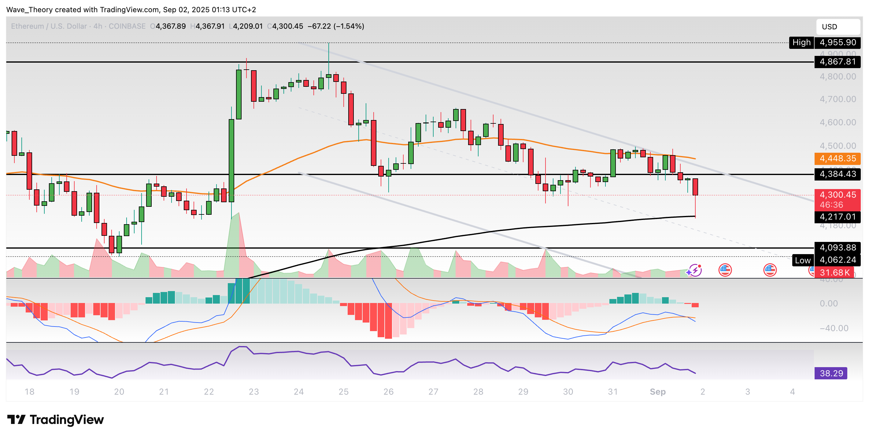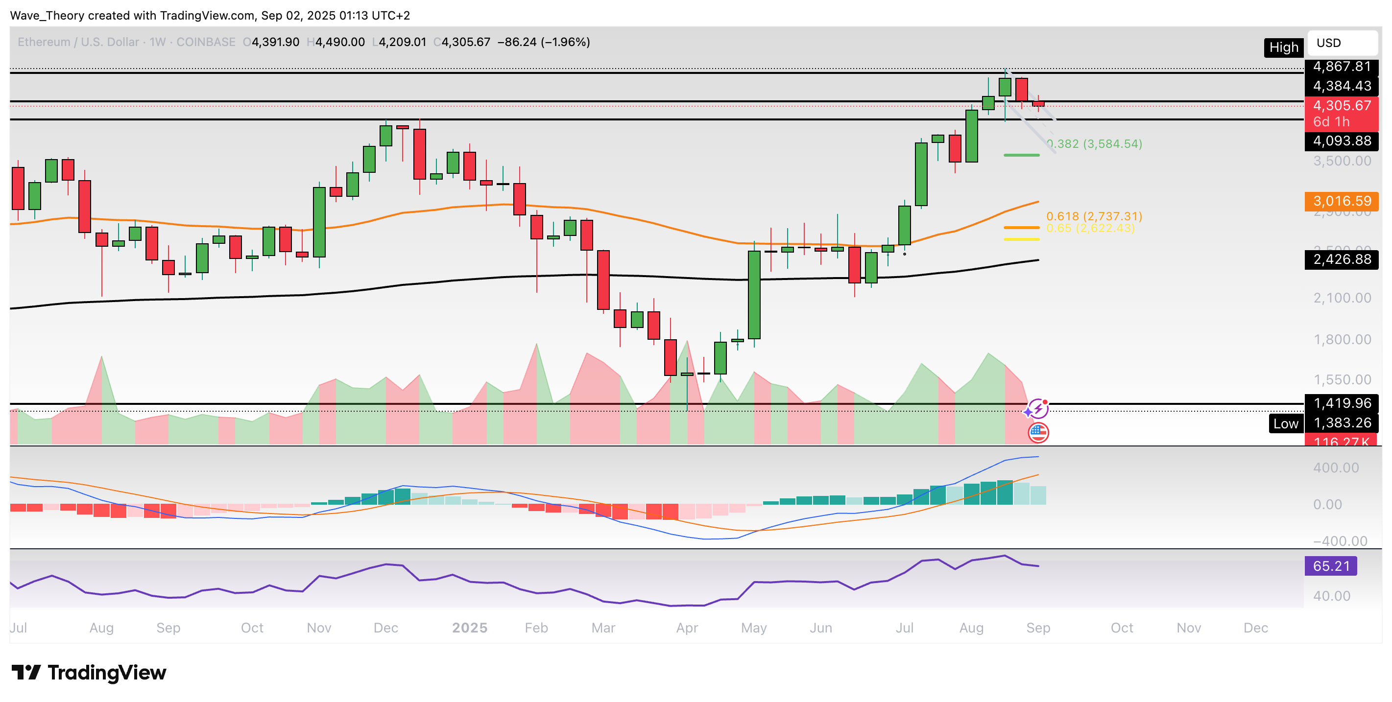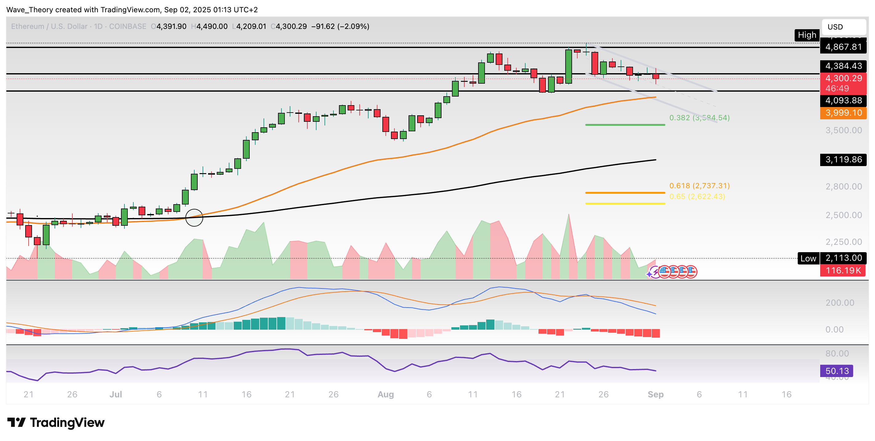 Ethereum-Prognose für Dienstag, 02. September 2025: Der Ethereum Kurs befindet sich seit einigen Tagen in einer Korrekturbewegung.