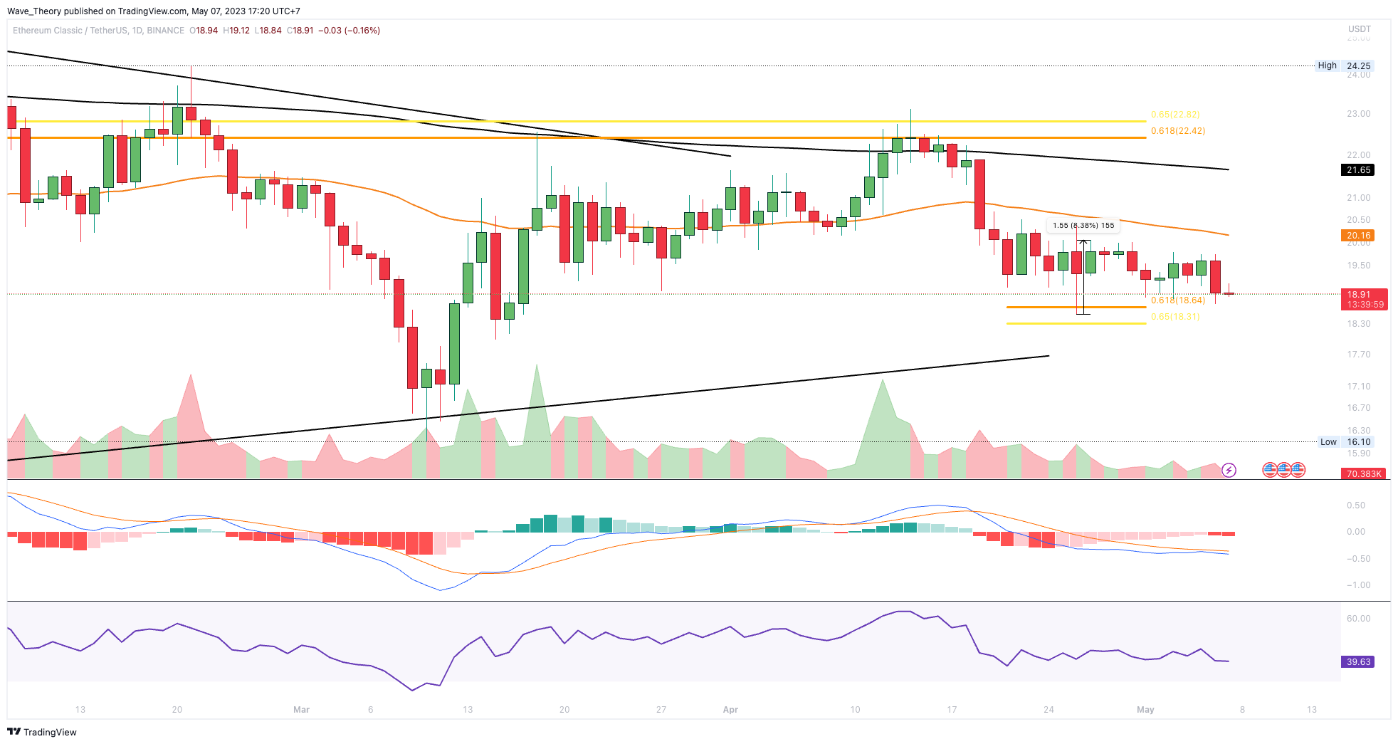 - Ethereum Classic muss jedoch immer noch den signifikanten Golden Ratio Widerstand bei rund 22,5 USD überwinden, um Chancen auf einen Aufwärtstrend zu haben.