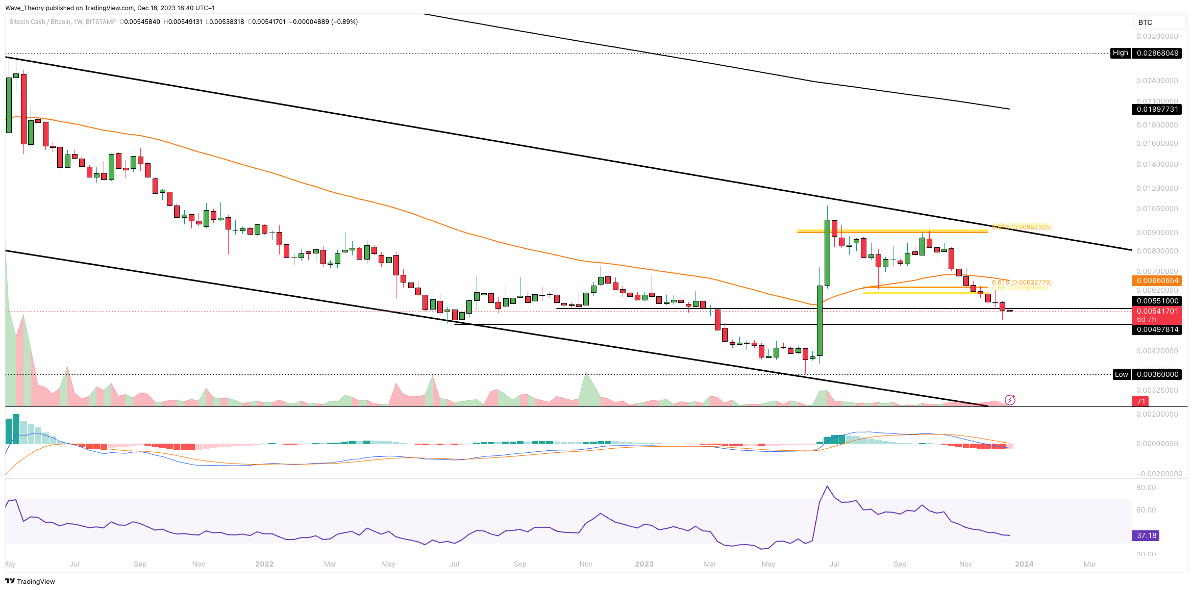 Gegen BTC hat der Bitcoin Cash Kurs die Golden Ratio Unterstützung bärisch gebrochen