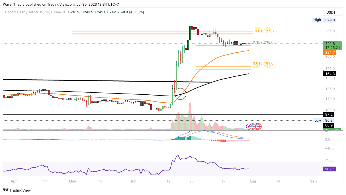 SponsoredPrallt der Bitcoin Cash Kurs an der 0,382 Fib Unterstützung ab?