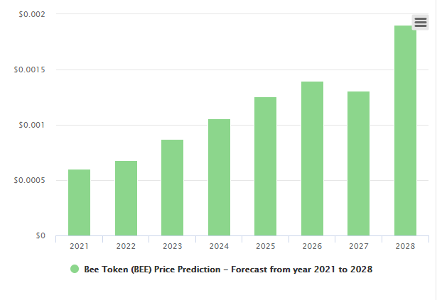 SponsoredBullisch sieht es allerdings das Team von DigitalCoinPrice. Der Bee Token Preis soll laut den Analysten im Jahr 2028 bei 0.00130629 US-Dollar liegen.
