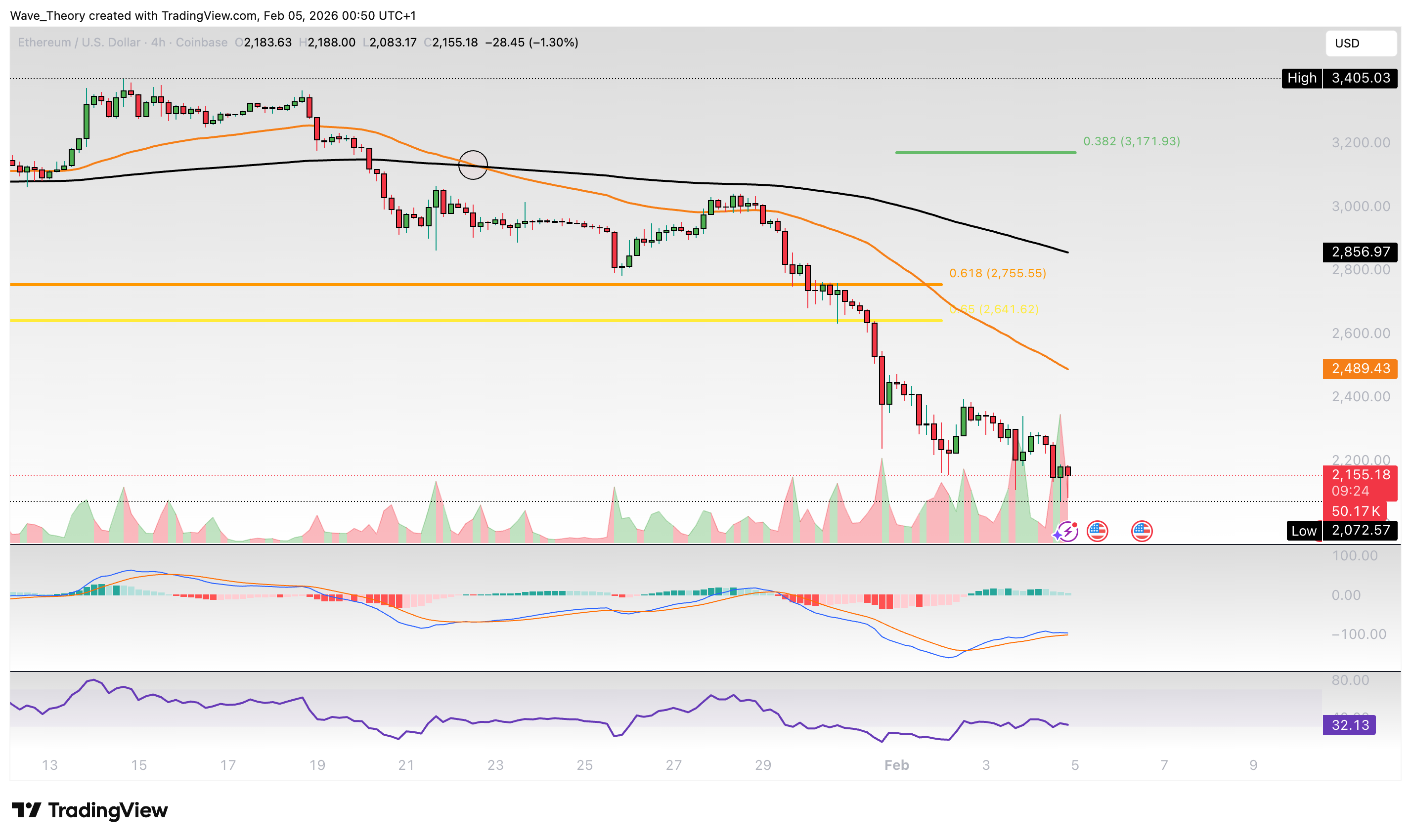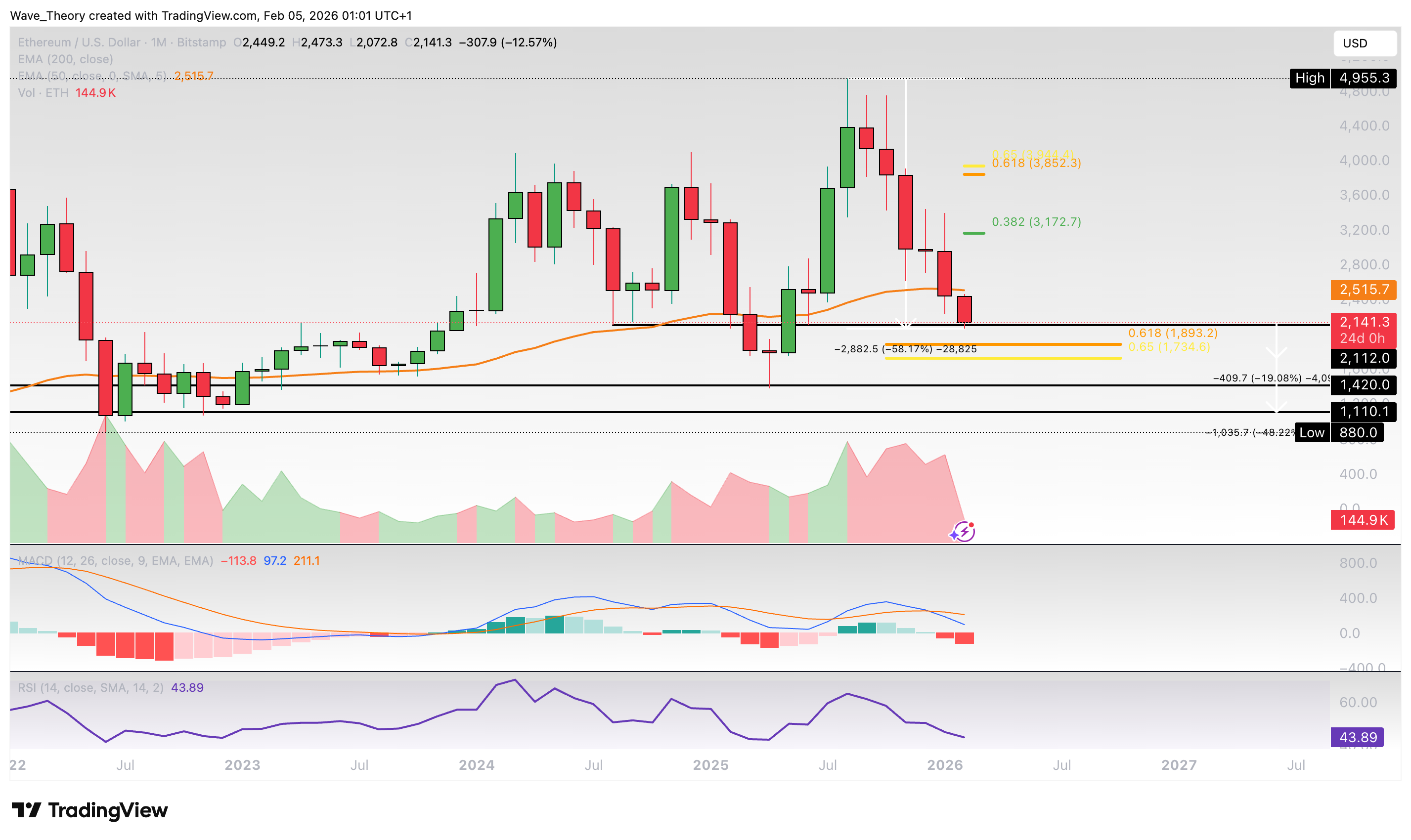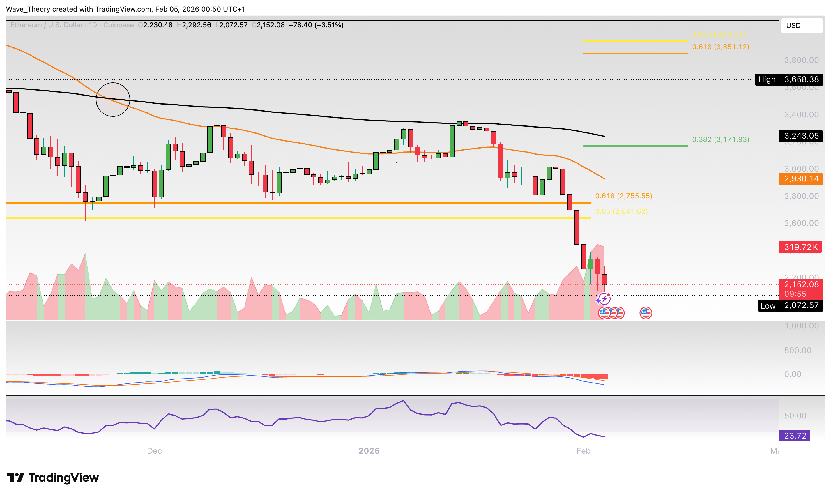Ethereum-Prognose für Donnerstag, 05. Februar 2026: Droht dem Ethereum Kurs jetzt ein Bärenmarkt? Immerhin könnte der Kurs bärisch ausbrechen.