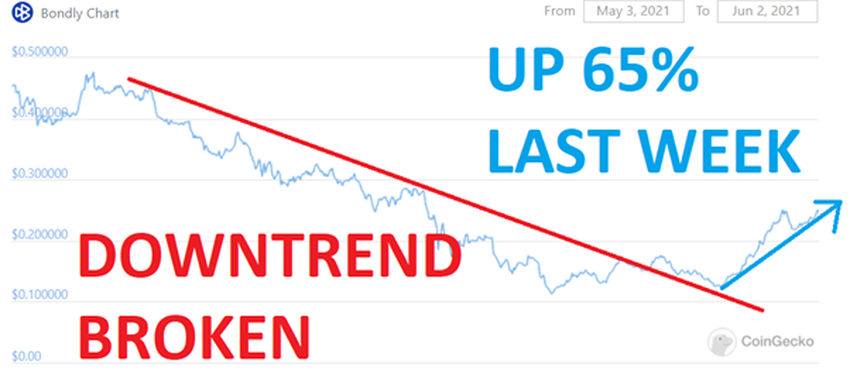 Der Bondly Kurs scheint sich von dem letzten Crash zu erholen. Der Bondly Preis ist in der letzten Woche um 65% angestiegen. Sollte sich die Kurserholung fortsetzen, dann könnte der Bondly Preis auf 0,50 US-Dollar ansteigen. Dies entspräche einer Kurssteigerung von 100%.
