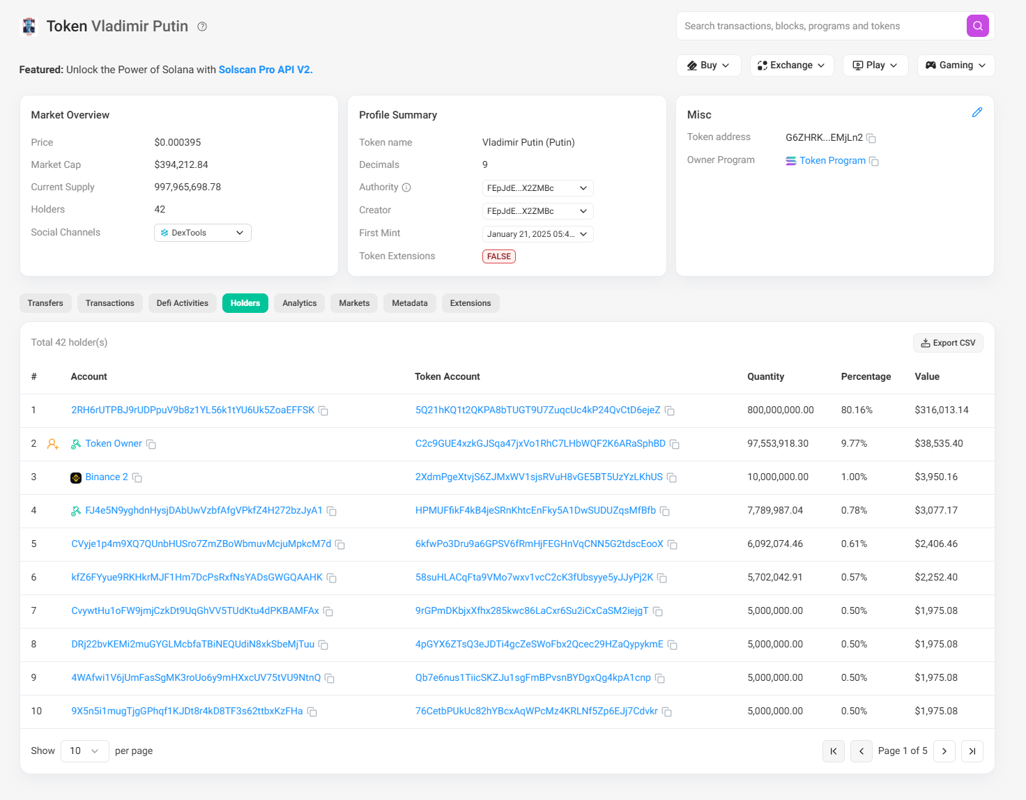 Weitere Untersuchungen ergaben, dass drei Token – PUTIN, KING und BUFFET – mit denselben Einzahlungs-Wallets auf Binance verbunden waren. Mit diesen Wallets wurden 91,3 Millionen USD abgehoben.