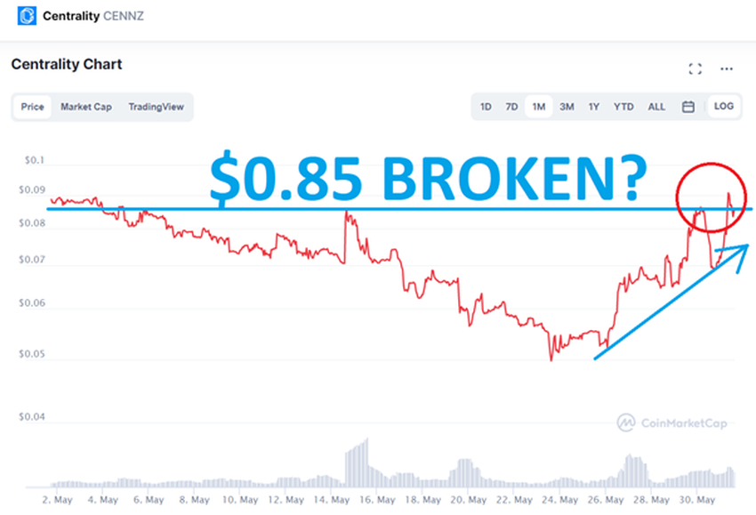 Gerade wurde ein NFT-Modul hinzugefügt, dass – wie die Grafik zeigt – hohe Wachstumschancen bietet. Ein anderer Grund, warum wir CENNZ in unsere Liste aufgenommen haben ist, dass ein Durchbruch, selbst beim aktuell kritischen Niveau von 0,85 USD möglich ist. Bedingt durch den Anstieg von 65 Prozent in der letzten Woche, wodurch CENNZ in die perfekte Ausgangsposition gerückt ist, um im Juni weiter anzusteigen.