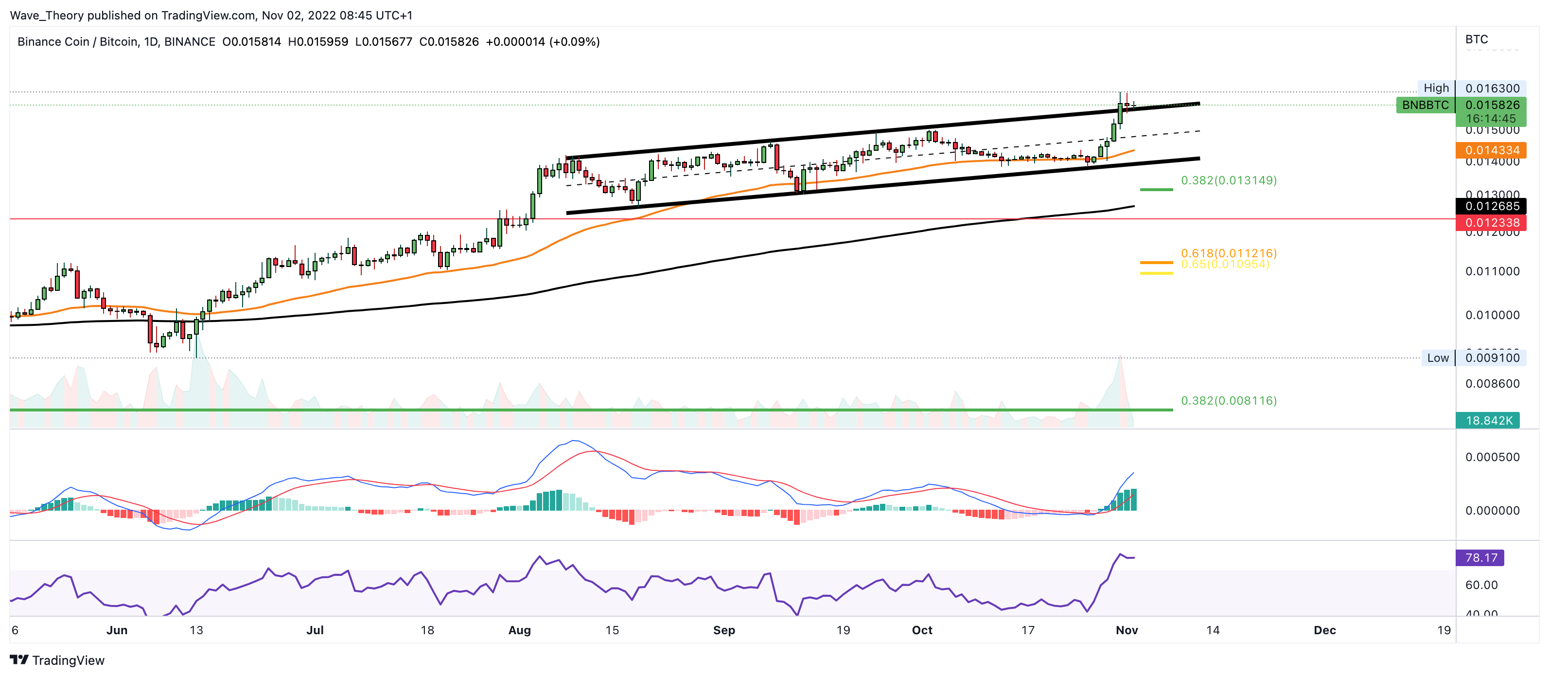 Gegen BTC befindet sich der BNB Kurs auf einem neuen ATH