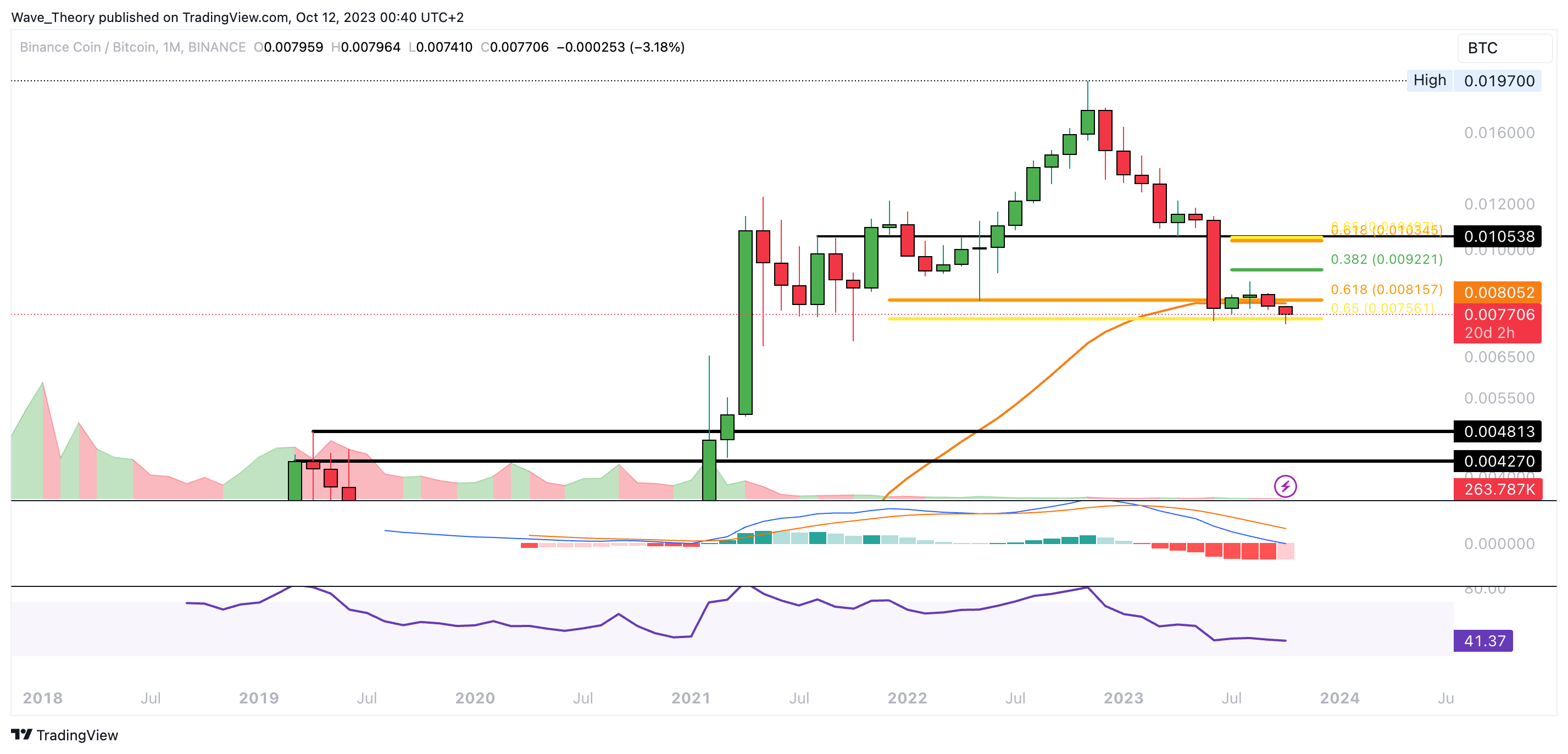 Auch gegen BTC befindet sich der Binance Coin Kurs an der Golden Ratio Unterstützung am 50-Monate-EMA