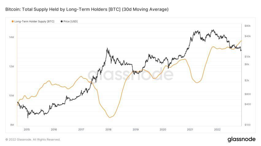 Außerdem erreichte auch die Zahl der Bitcoin, die von Langzeit-Besitzer gehalten werden, vor kurzem ein neues Allzeithoch. Viele BTC-Besitzer sind also trotz des Bärenmarktes gewillt, weiter zu halten.