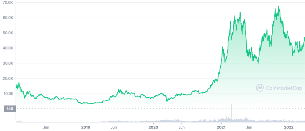 Bitcoin hat im Schnitt der letzten 5 Jahre 840 Prozent an Wert pro Jahr zugelegt und schützte somit sehr gut vor der Inflation. In Anbetracht der steigenden Nachfrage nach Bitcoin, der gestiegenen Produktionskosten und dem immer größer werdenden Markt sind weitere Steigungen in Zukunft absehbar. Es sieht zumindest danach aus als würden sich gute Jahre anbahnen. Auch der Preis von Aktien und Gold stieg in den letzten Jahren an: Bei Aktien sind es circa 18 Prozent pro Jahr im Durchschnitt der letzten 5 Jahre. Bei Gold 11 Prozent.