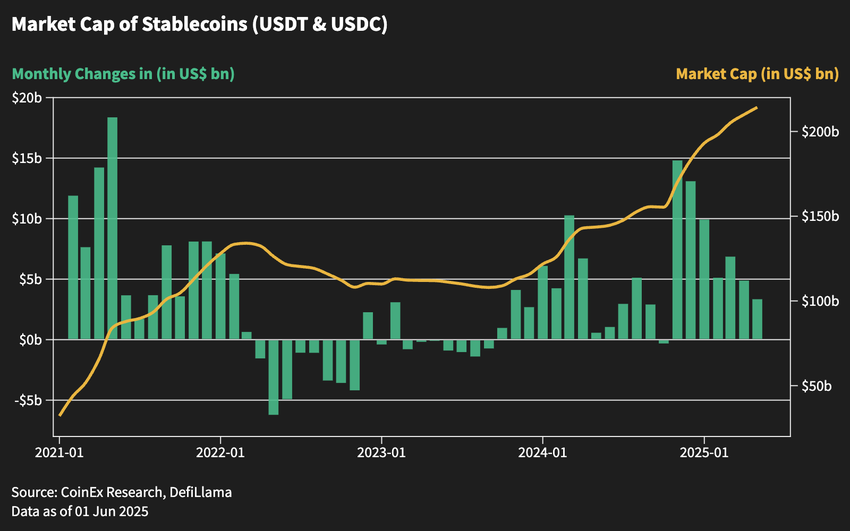 CoinEx Research Bericht Mai 2025: Bitcoin erreichte im Mai ein neues Allzeithoch von 112.000 $, getrieben von institutioneller Nachfrage und ETF-Zuflüssen. Doch sinkende Stablecoin-Aktivität und erhöhte Volatilität mahnen zur Vorsicht. Ethereum verbesserte mit dem Pectra-Upgrade Skalierbarkeit und Nutzererfahrung.