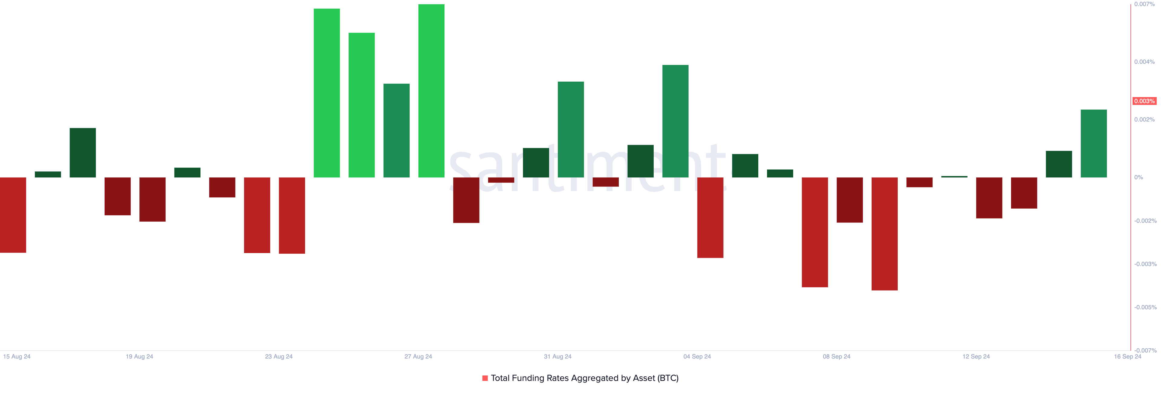 Wenn der Verkaufsdruck auf Bitcoin vor einer möglichen Zinssenkung nachlässt, deutet dies häufig darauf hin, dass Investoren ein günstigeres Marktumfeld erwarten. Diese zunehmend bullische Stimmung spiegelt sich in der Bitcoin-Finanzierungsrate wider, die vor zwei Tagen ins Positive drehte, nachdem sie zuvor sechs Tage in Folge negativ gewesen war.
