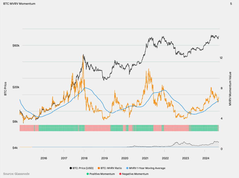Sponsored Sponsored“Anfang Juli zog sich das MVRV-Verhältnis zurück und fand Unterstützung nahe seinem 365-Tage-Durchschnitt. Dies geschah in der Nähe der Tiefststände der Korrektur und deutet darauf hin, dass der Aufwärtstrend 2024 intakt bleibt, wobei die Rentabilität der Investoren positiv bleibt”, schrieb James Check, leitender Analyst bei Glassnode.