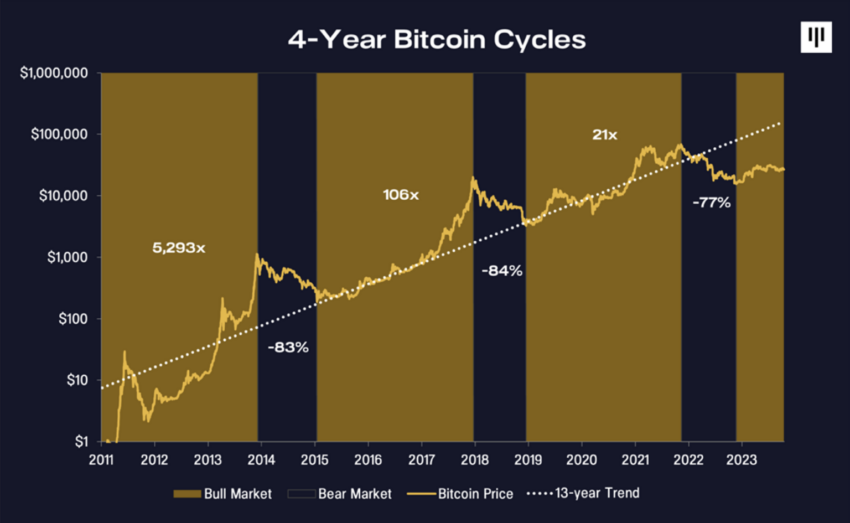 Die natürliche Zyklisierung, die durch seine transparenten Liefer- und Verteilungsregeln angetrieben wird, unterstützt diese bullische Sichtweise. Satoshi Nakamoto konzipierte Bitcoin mit einem vorhersehbaren Vierjahreszyklus, der die Kursbewegungen maßgeblich prägt.