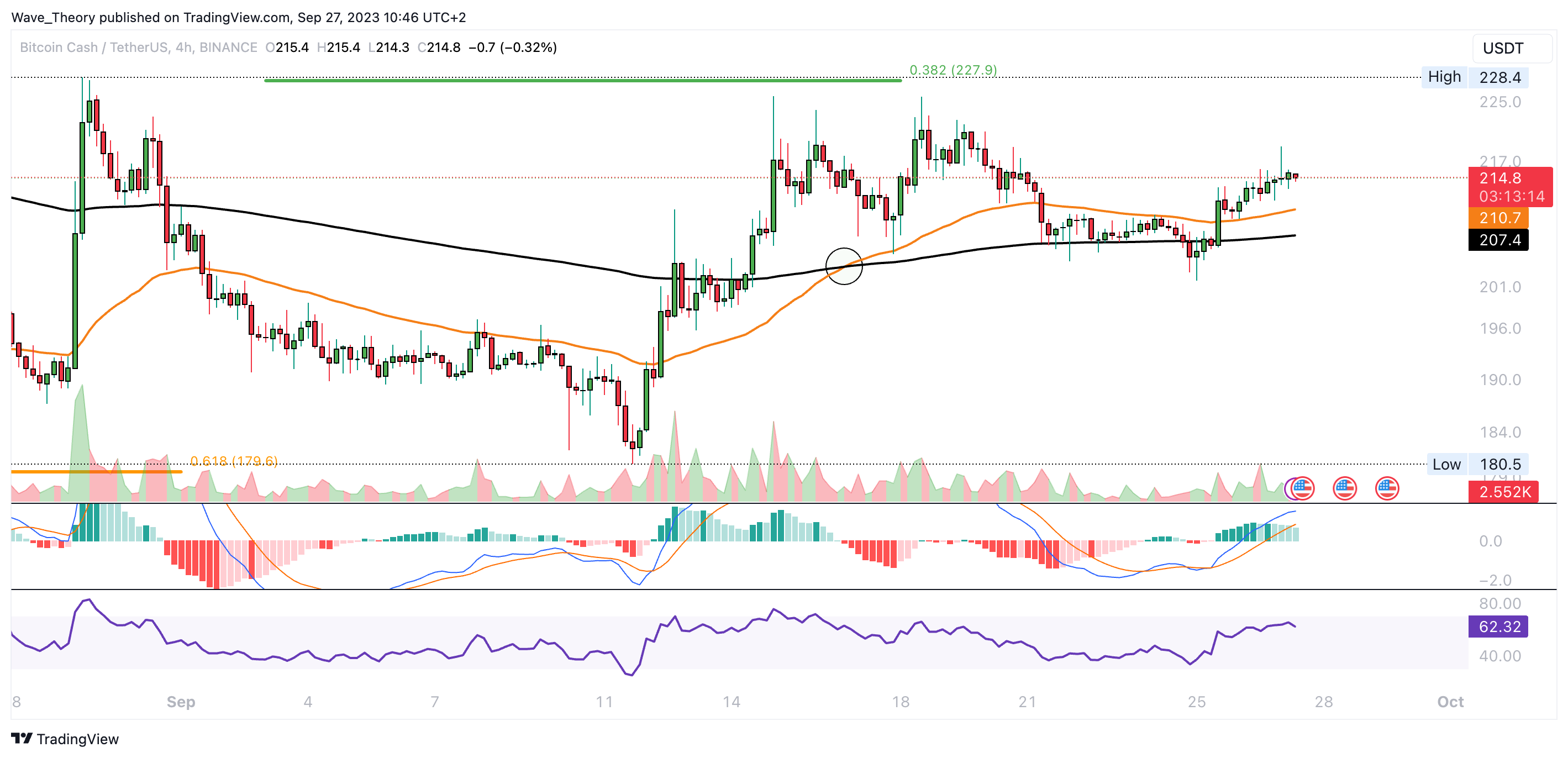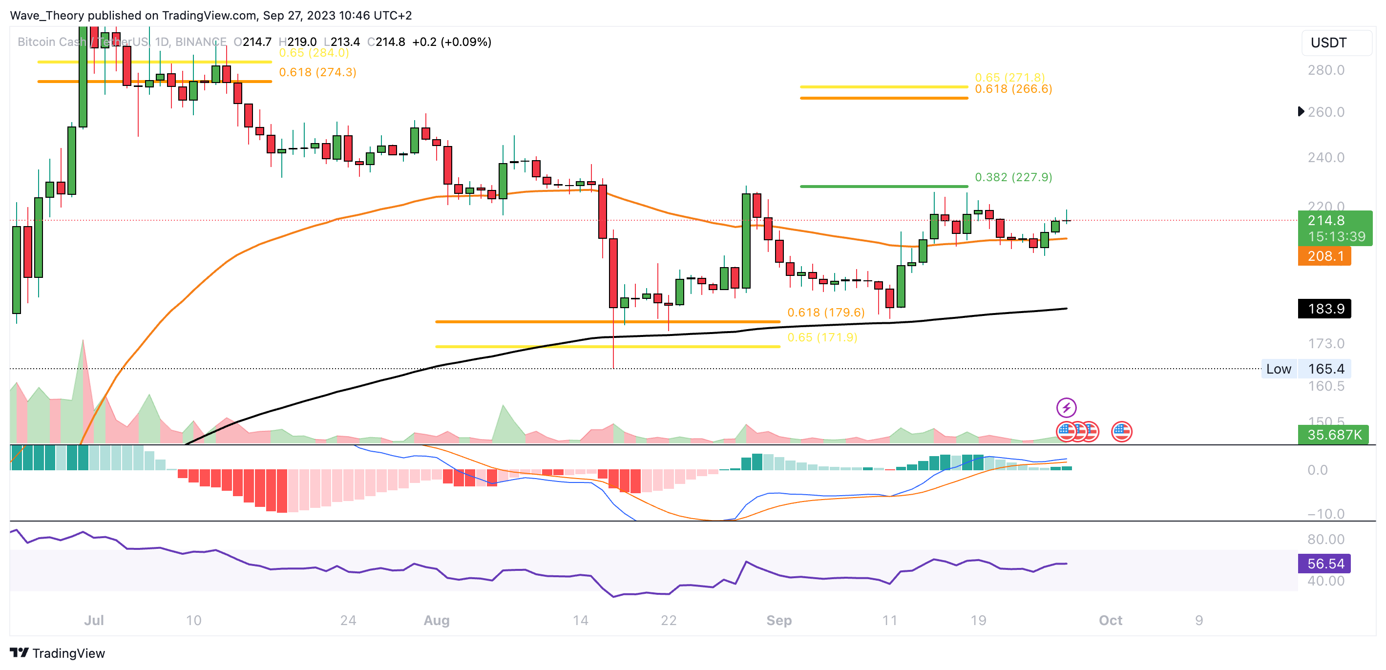 SponsoredDer Bitcoin Cash Kurs konnte an der 50-Tage-EMA Unterstützung bei rund 208 USD abprallen