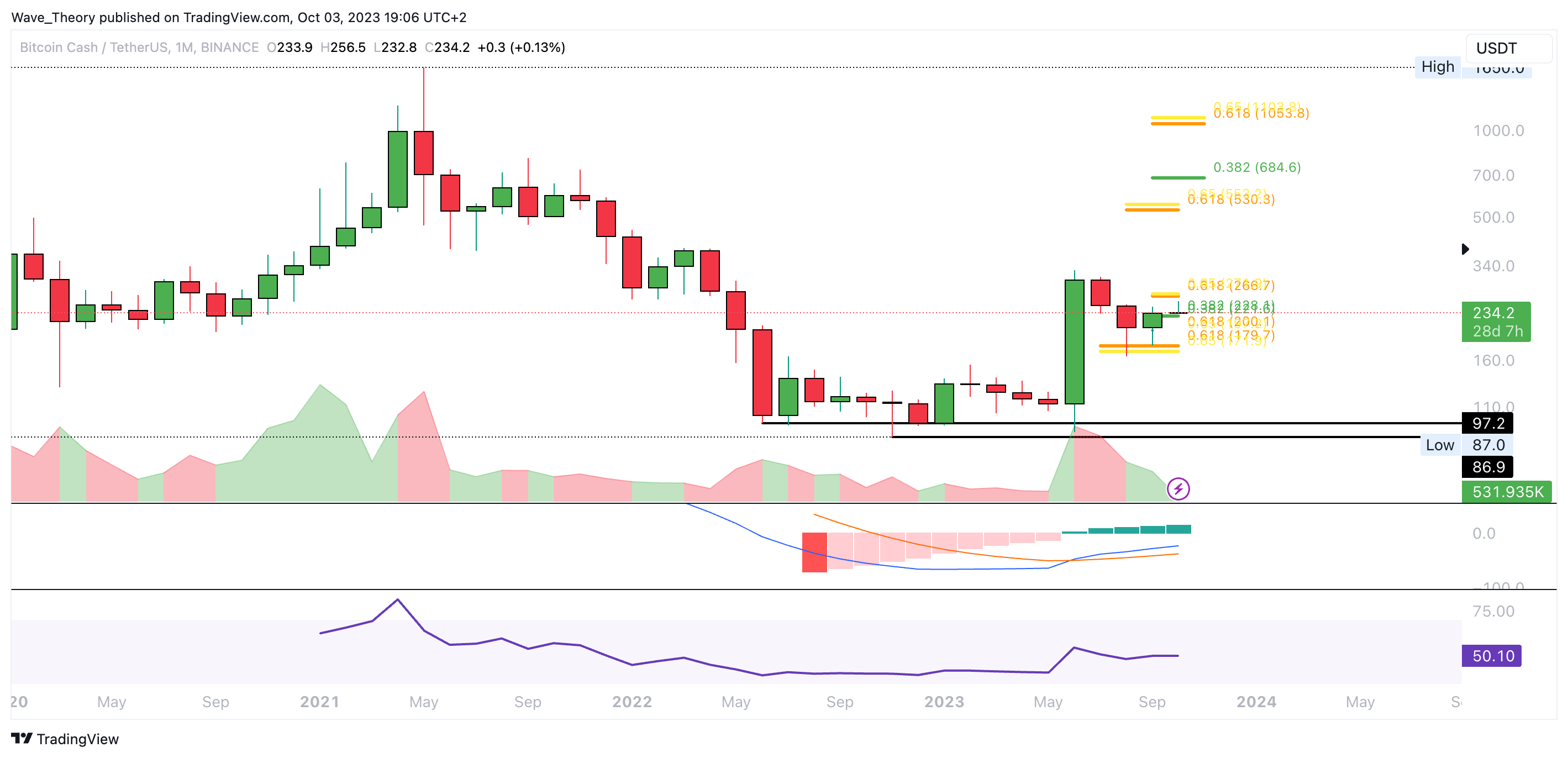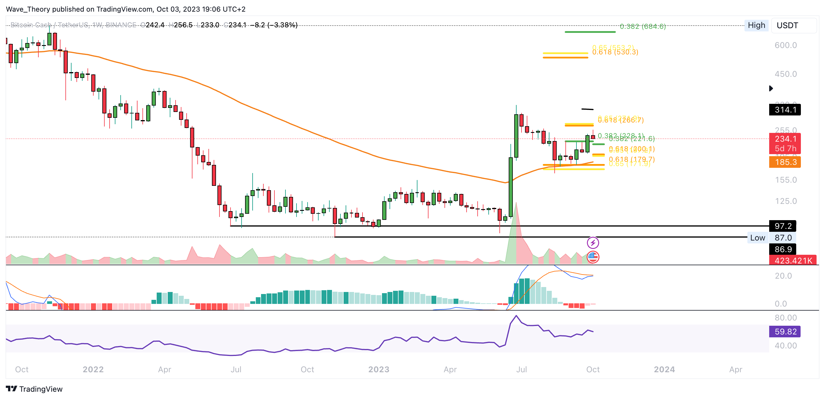 Wochenchart von Bitcoin Cash: Überkreuzen sich die MACD Linien jetzt bullisch?