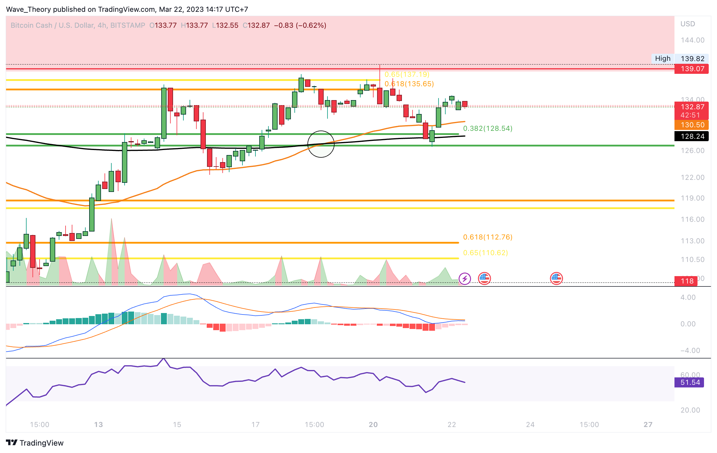 Der Bitcoin Cash Kurs korrigierte zum 0,382 Fib Niveau bei rund 126,8 USD
