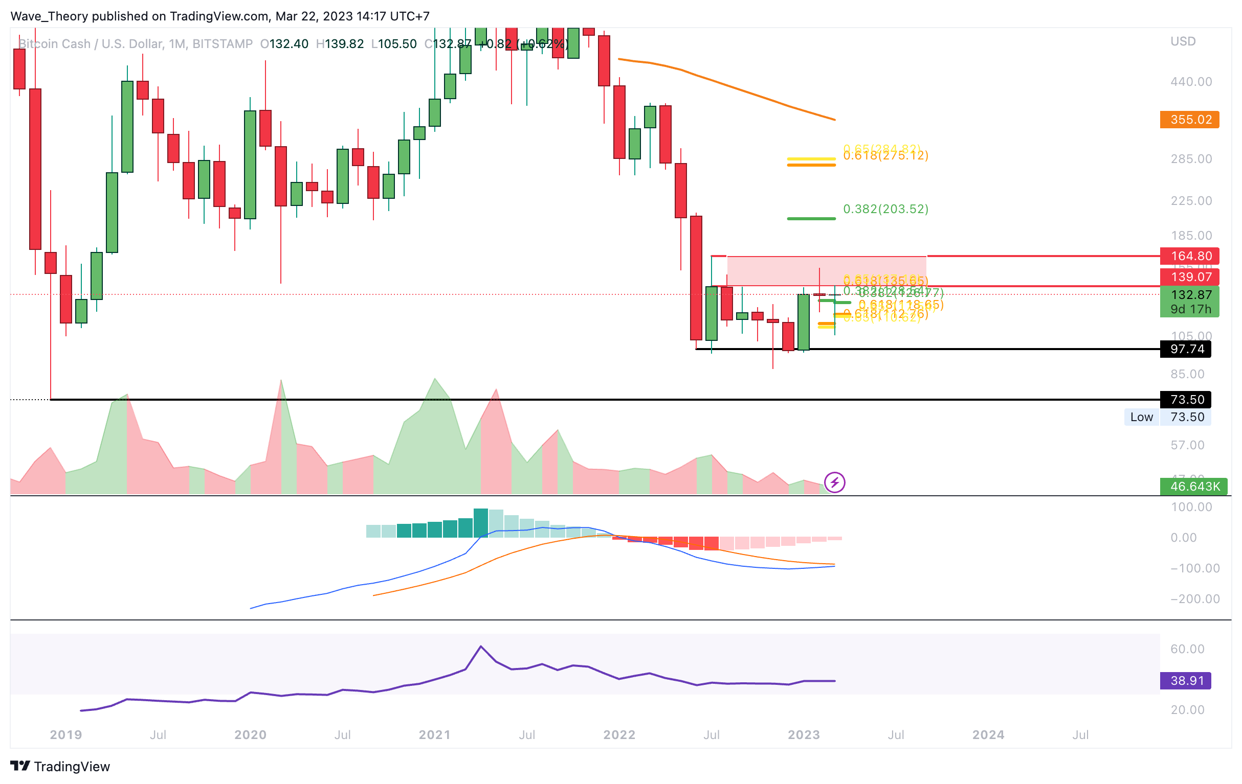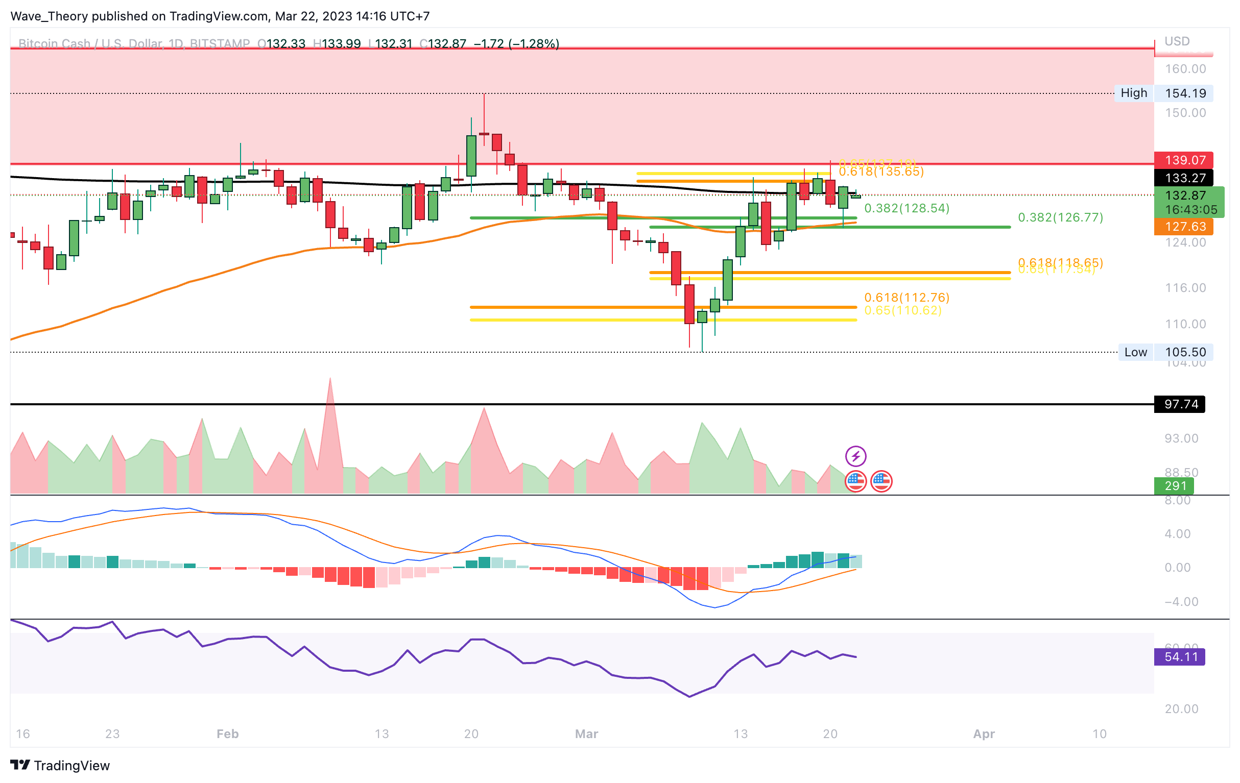 - BCH stößt jetzt auf signifikanten Fib Widerstand an der Golden Ratio bei rund 134 USD.