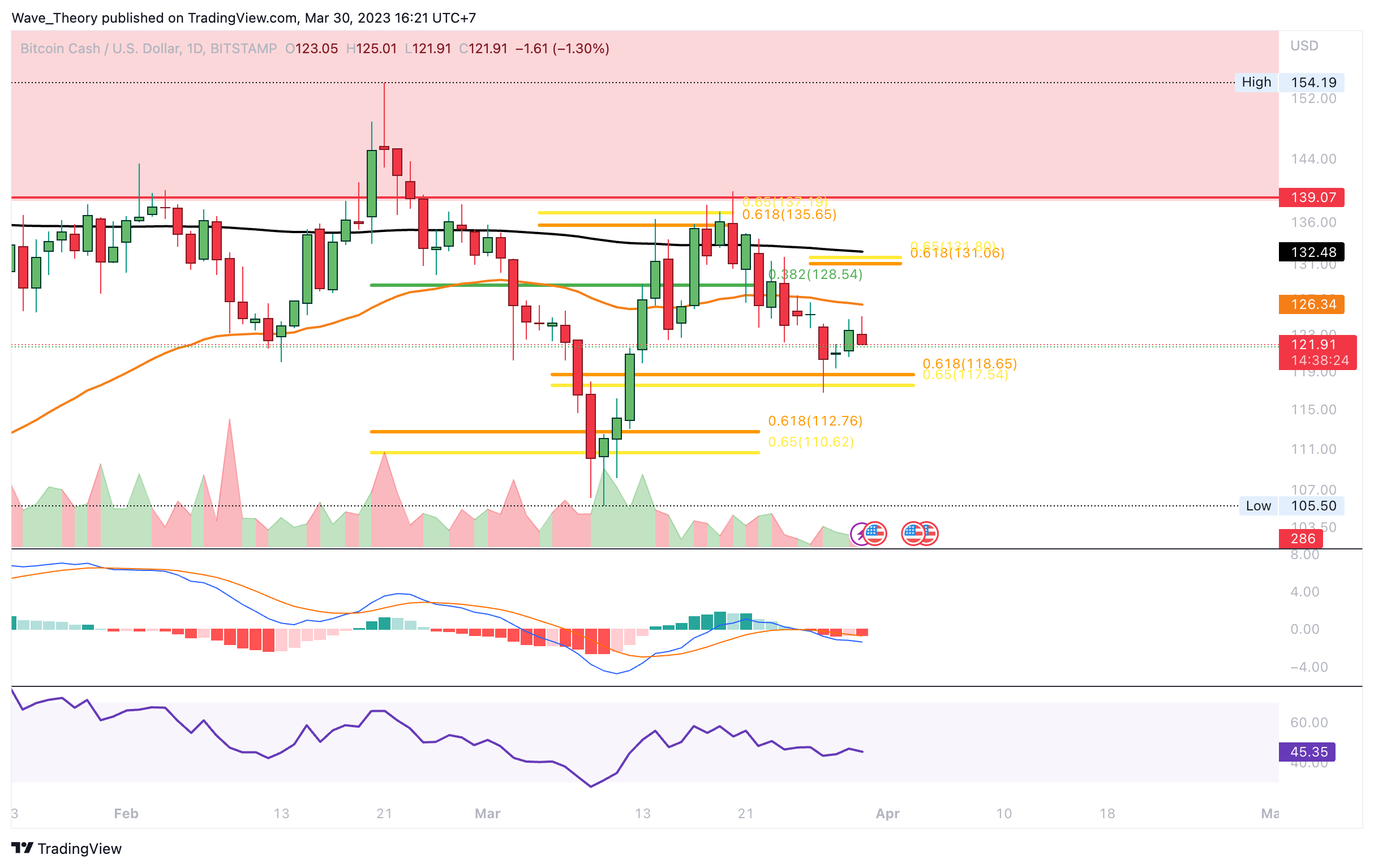 Sofern Bitcoin Cash den Golden Ratio Widerstand bei rund 132 USD nicht bricht, bleibt die Korrekturbewegung intakt. Dann könnte Bitcoin Cash erneut zur Golden Ratio Unterstützung bei rund 118 USD zurückkehren und wenn diese bricht, wartet erst wieder bei rund 112 USD signifikante Unterstützung auf den BCH Kurs.