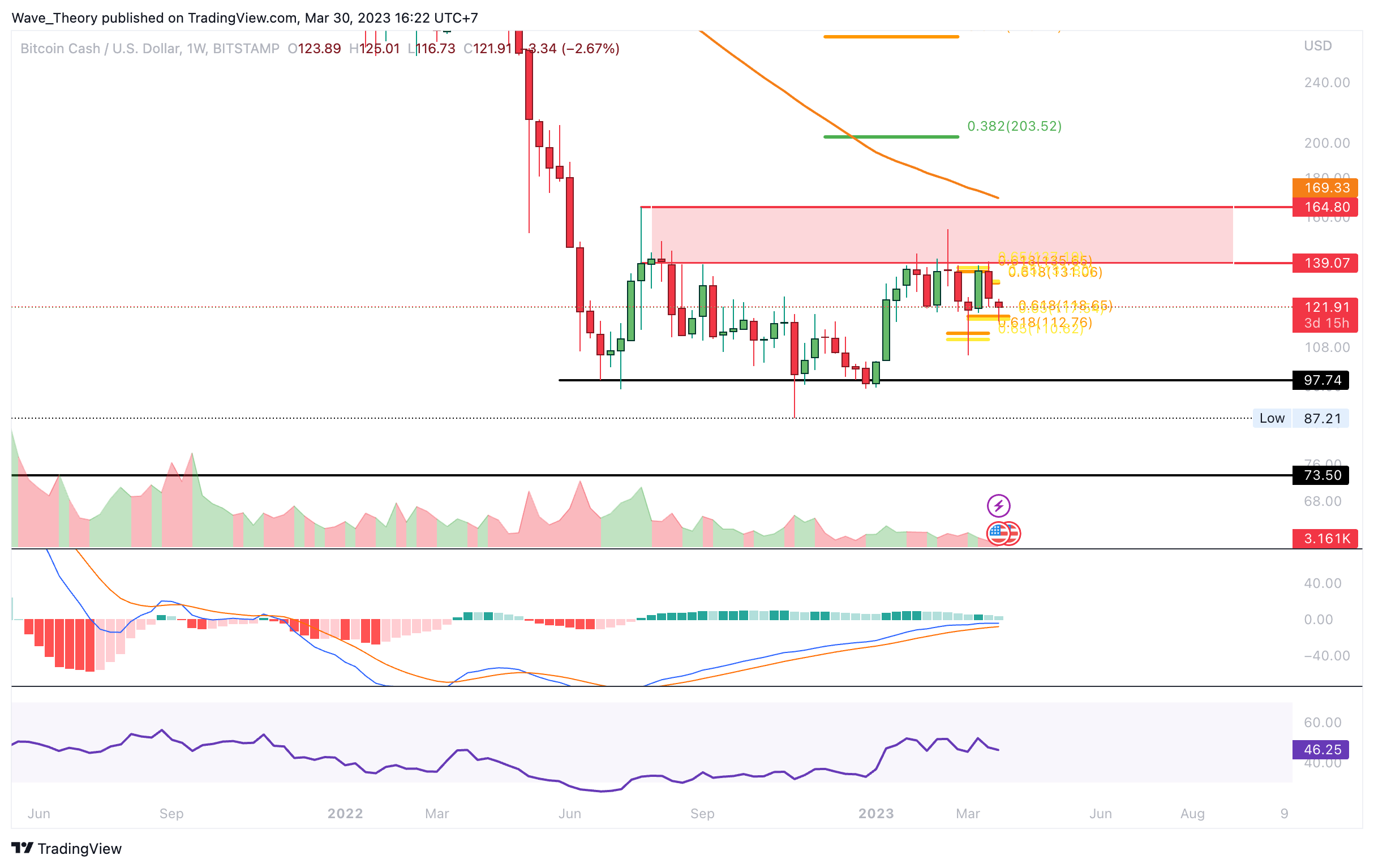 Wenn Bitcoin Cash die Golden Ratio Unterstützung bei rund 112 USD bärisch bricht, könnte der Kurs zur Unterstützung zwischen rund 73,5 USD und rund 98 USD zurückkehren. Nach oben hin wartet zwischen rund 139 USD und rund 165 USD signifikanter Widerstand auf Bitcoin Cash.