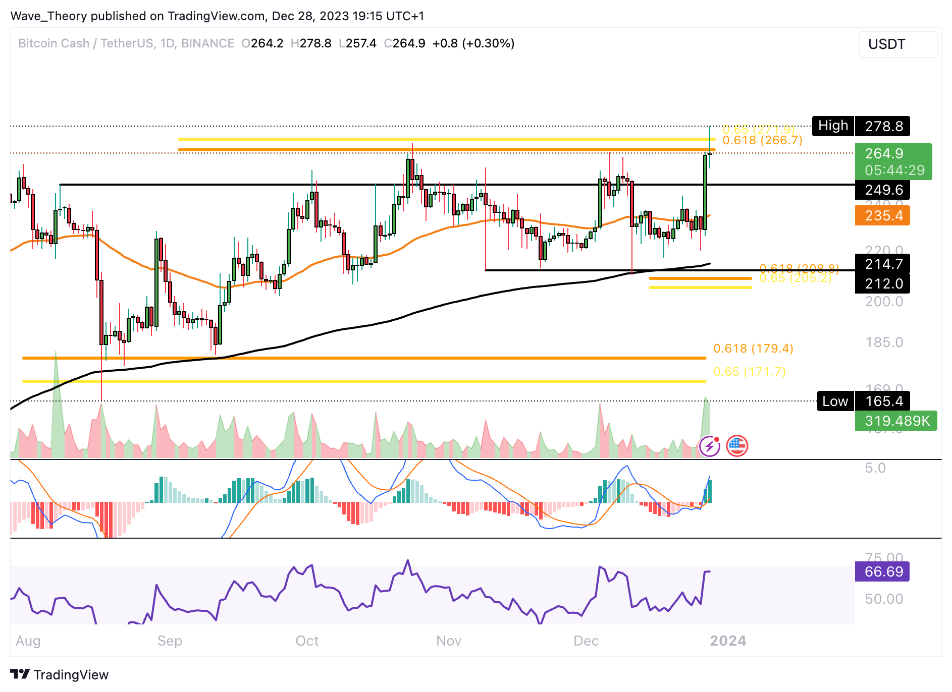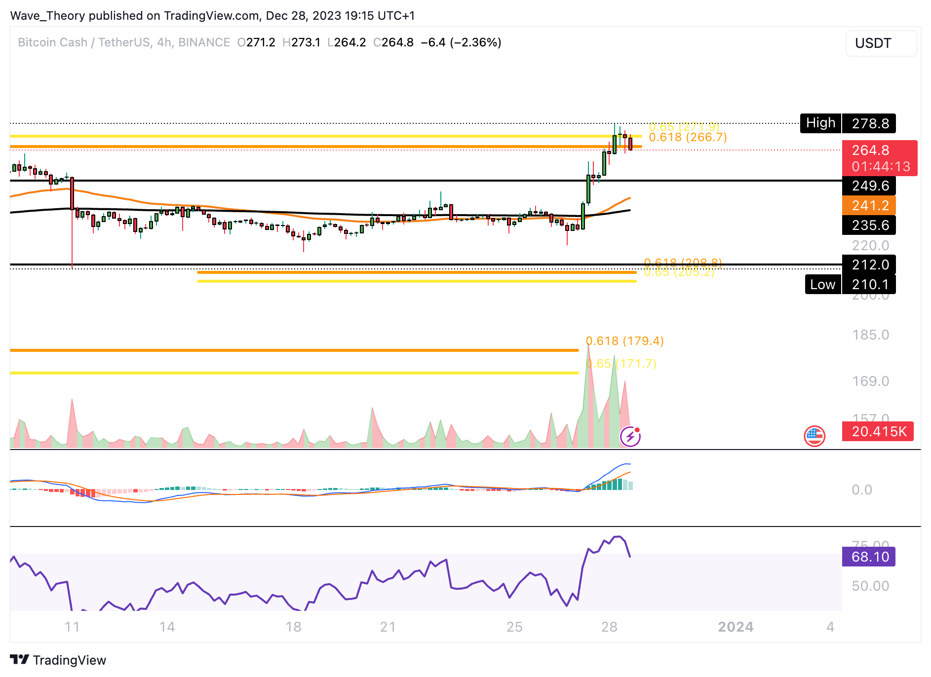 Damit könnte es zum Jahresbeginn bullisch weiter gehen für Bitcoin Cash – sofern der Kurs die Golden Ratio bei rund 270 USD überwindet.